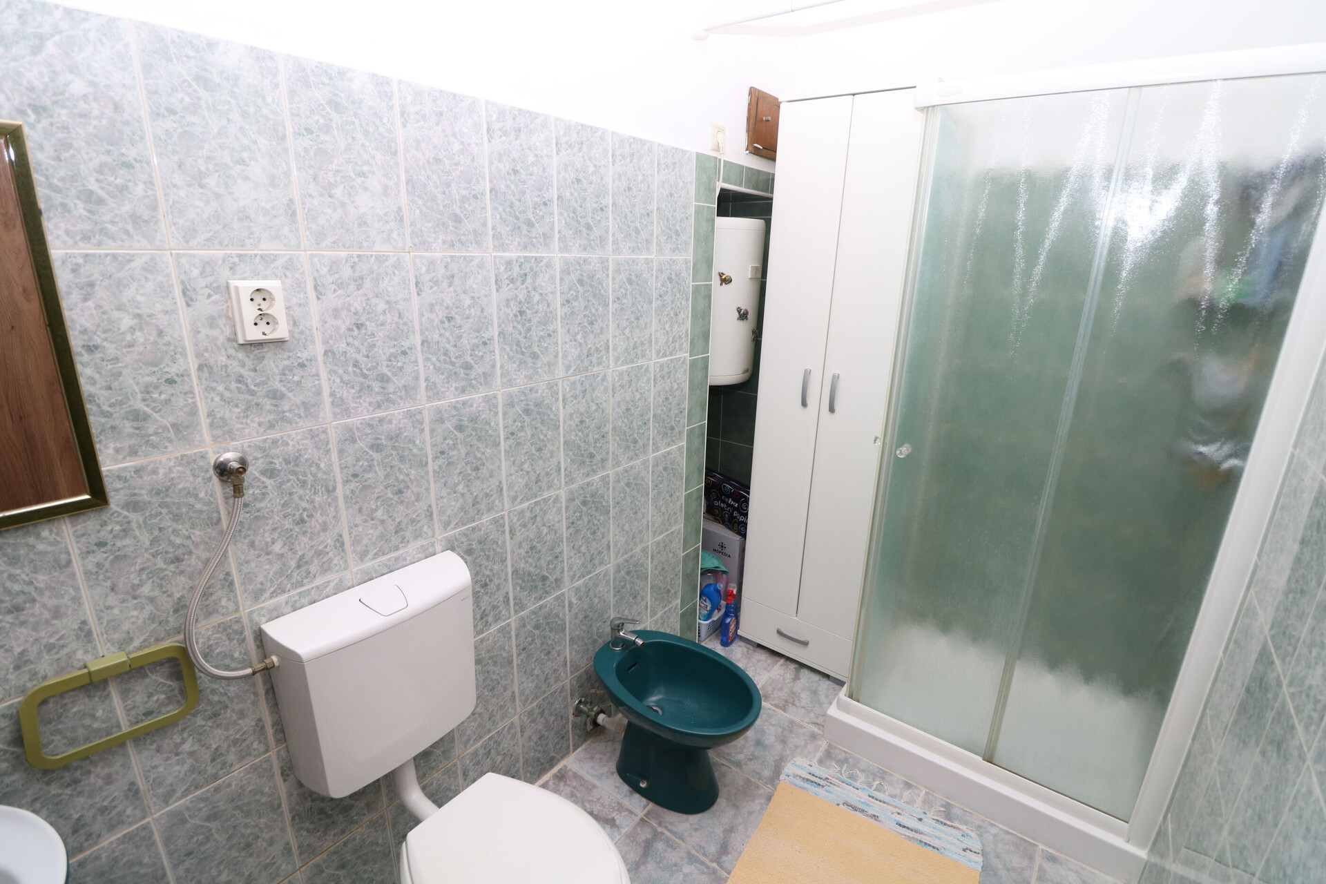 • Dusche, Duschkabine, Waschmaschine, Fön, Handtücher.