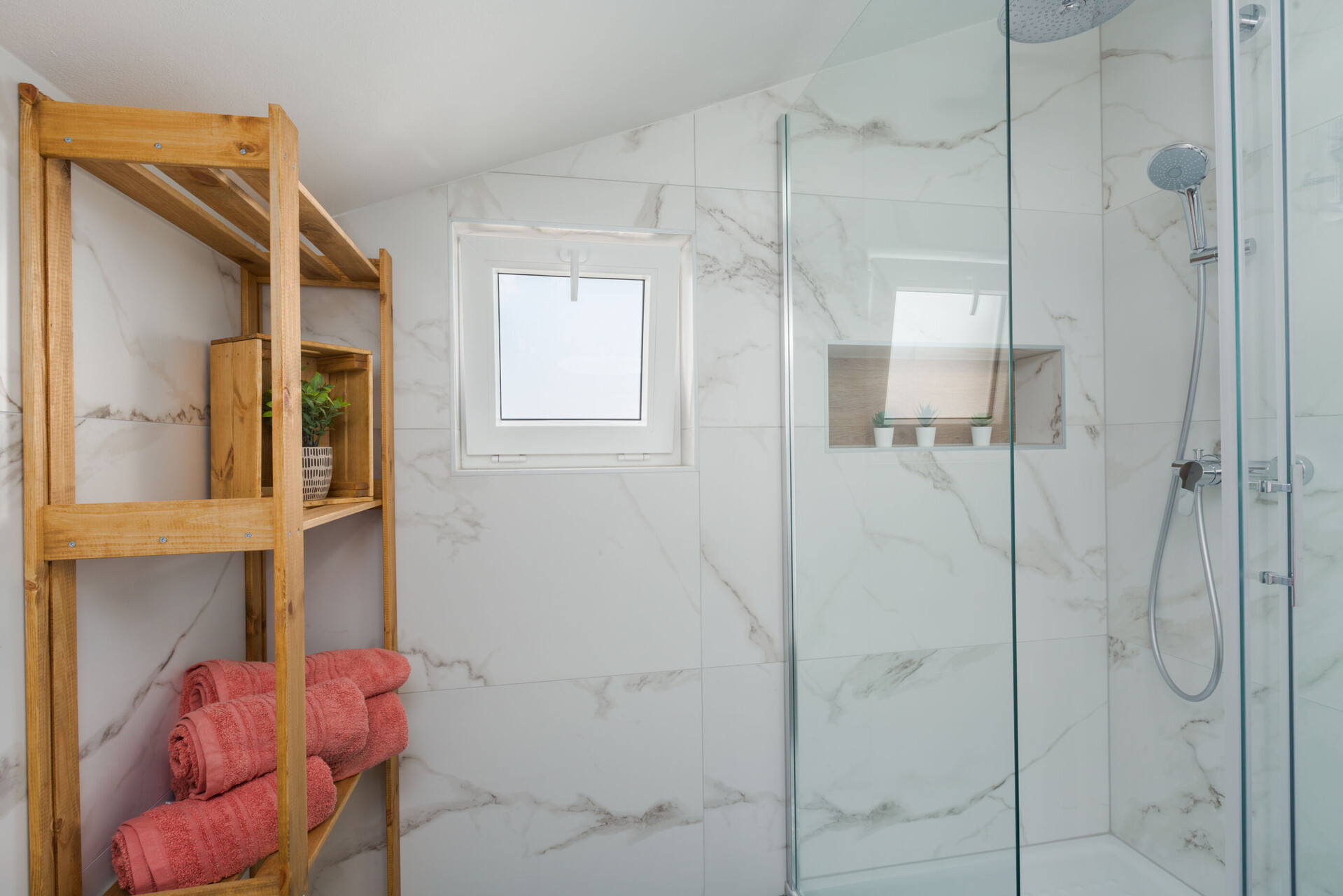 • Dusche, Duschkabine, Waschmaschine, Fön, Handtücher.