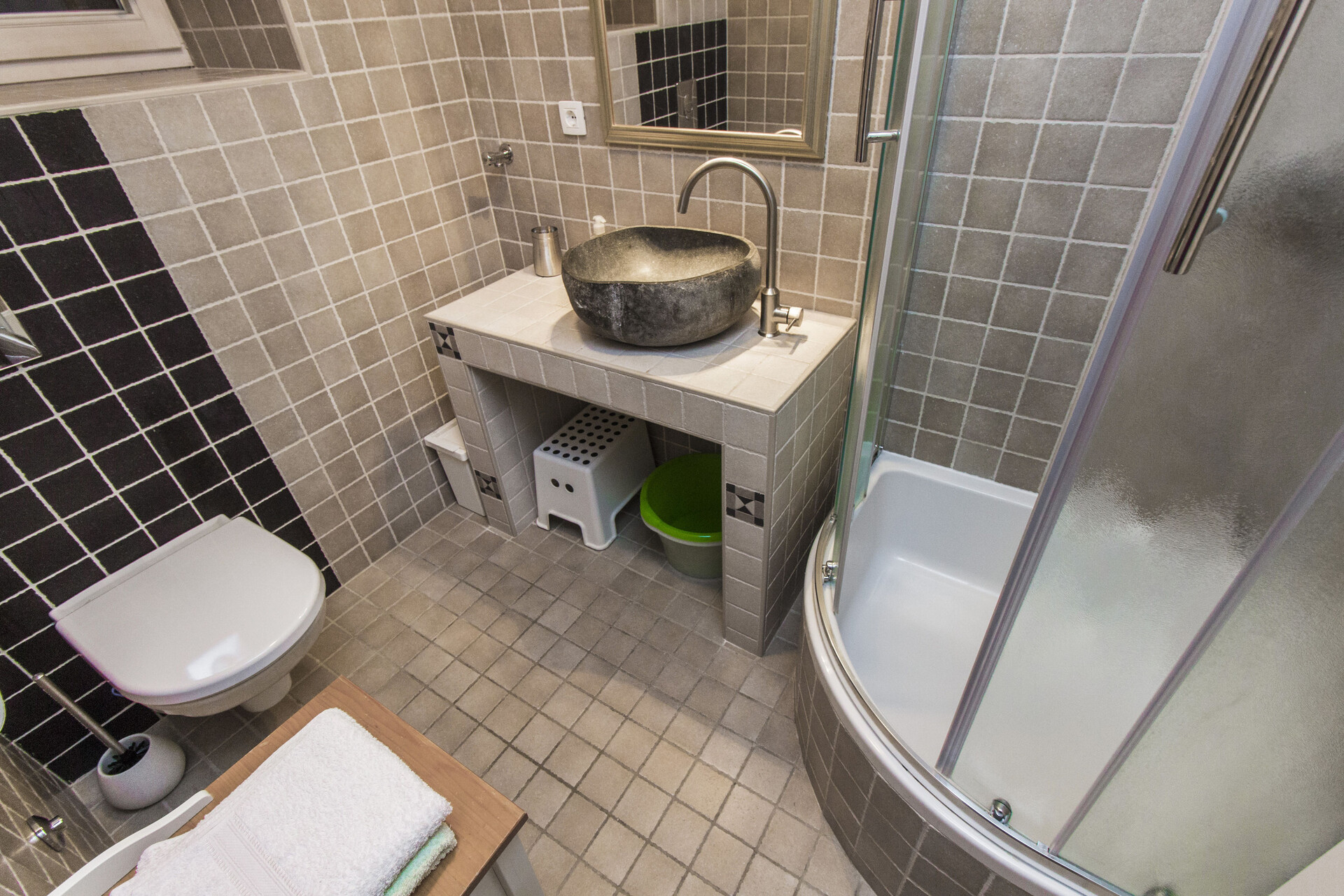 • Dusche, Duschkabine, Waschmaschine, Fön, Handtücher.