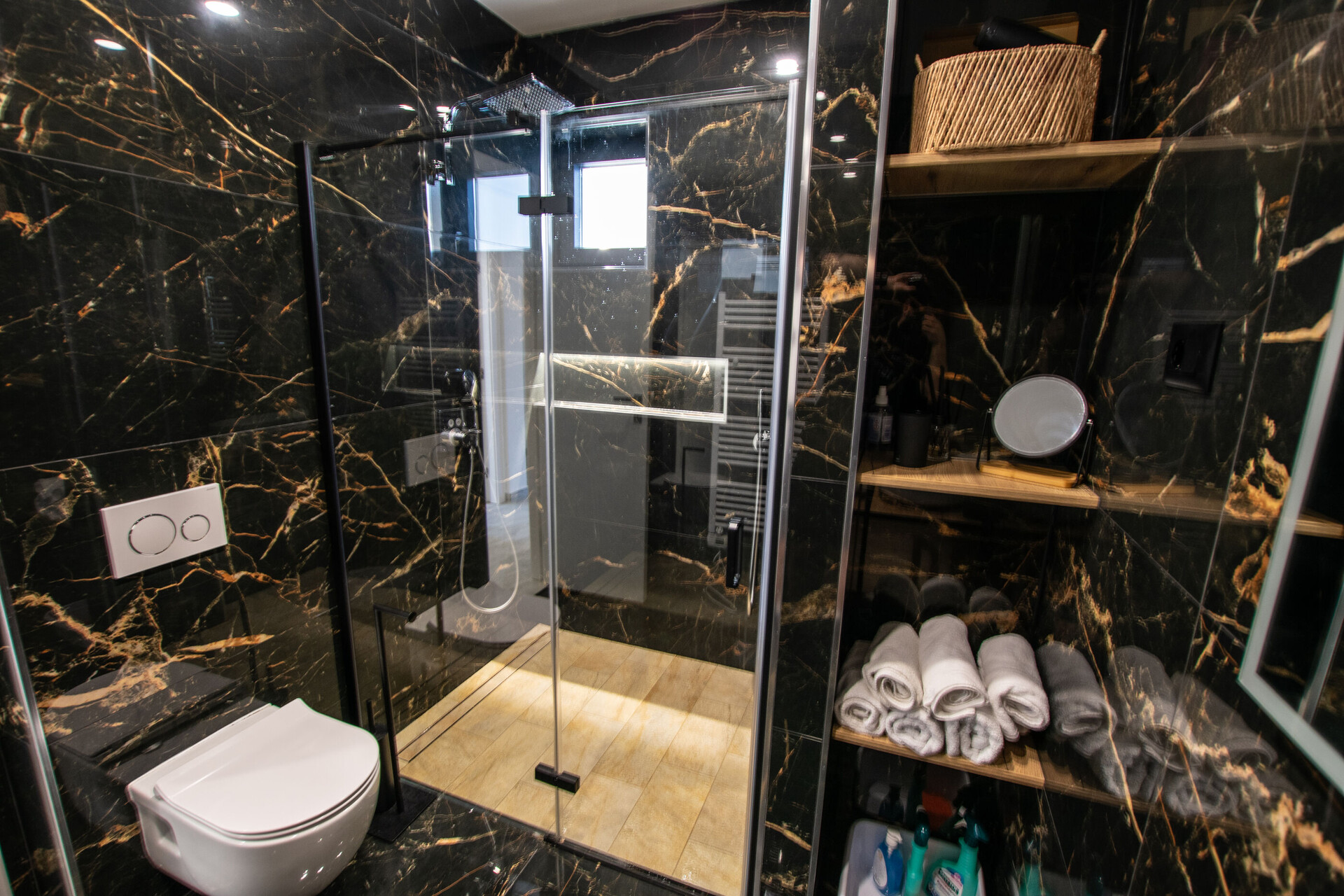 • Dusche, Duschkabine, Waschmaschine, Fön, Handtücher.