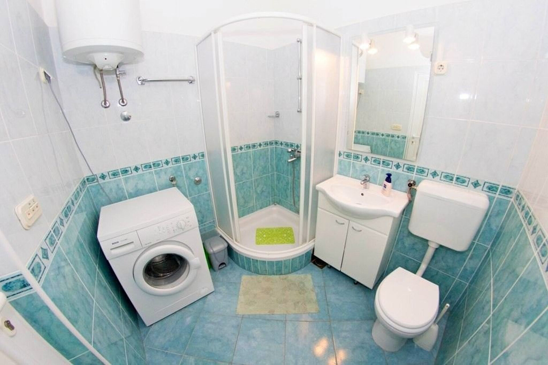 • Dusche, Duschkabine, Waschmaschine, Handtücher.