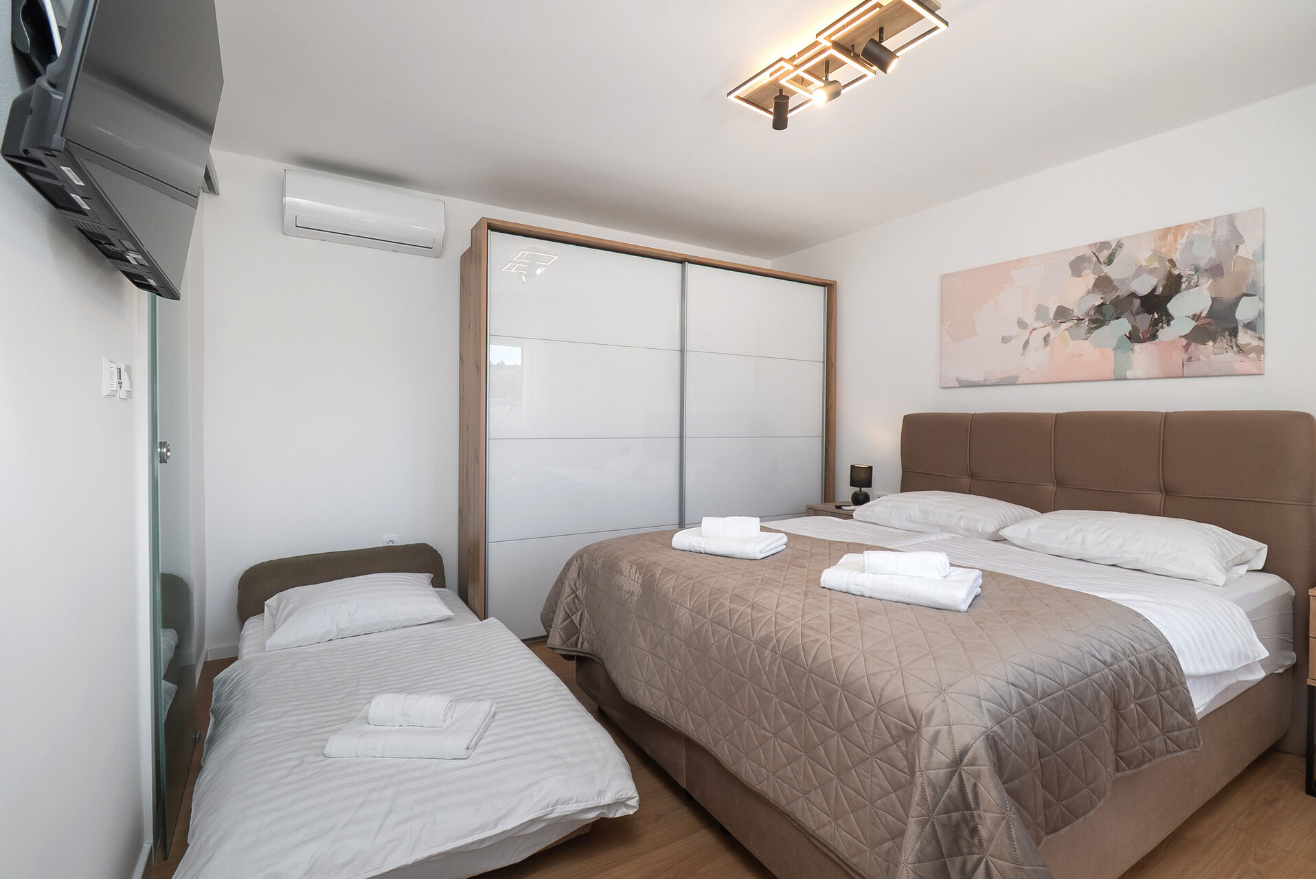 • Betten:. Bettwäsche steht zur Verfügung. Das Zimmer hat Balkonzugang.