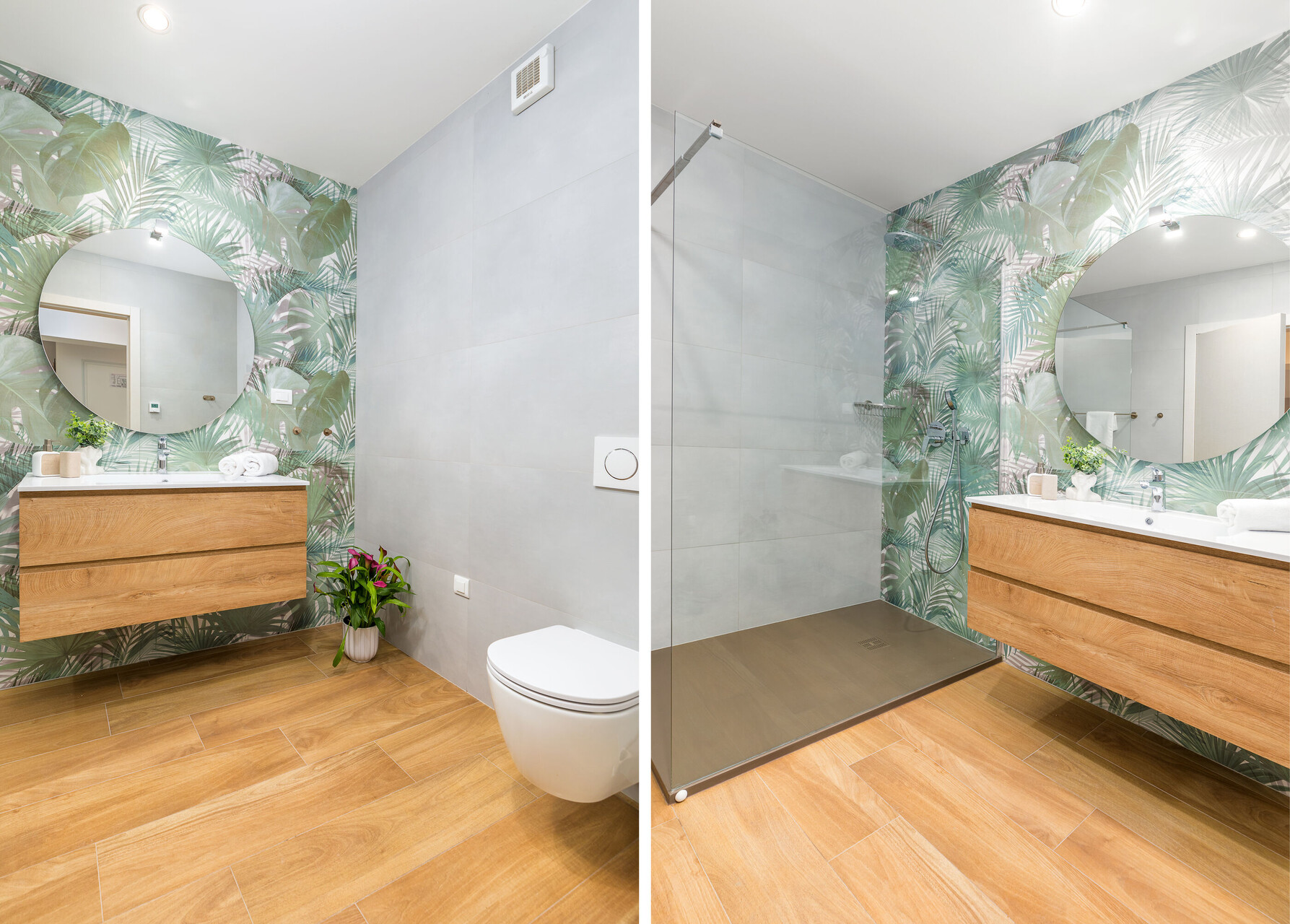 • tuš, tuš kabina, stroj za pranje rublja, fen, ručnici.