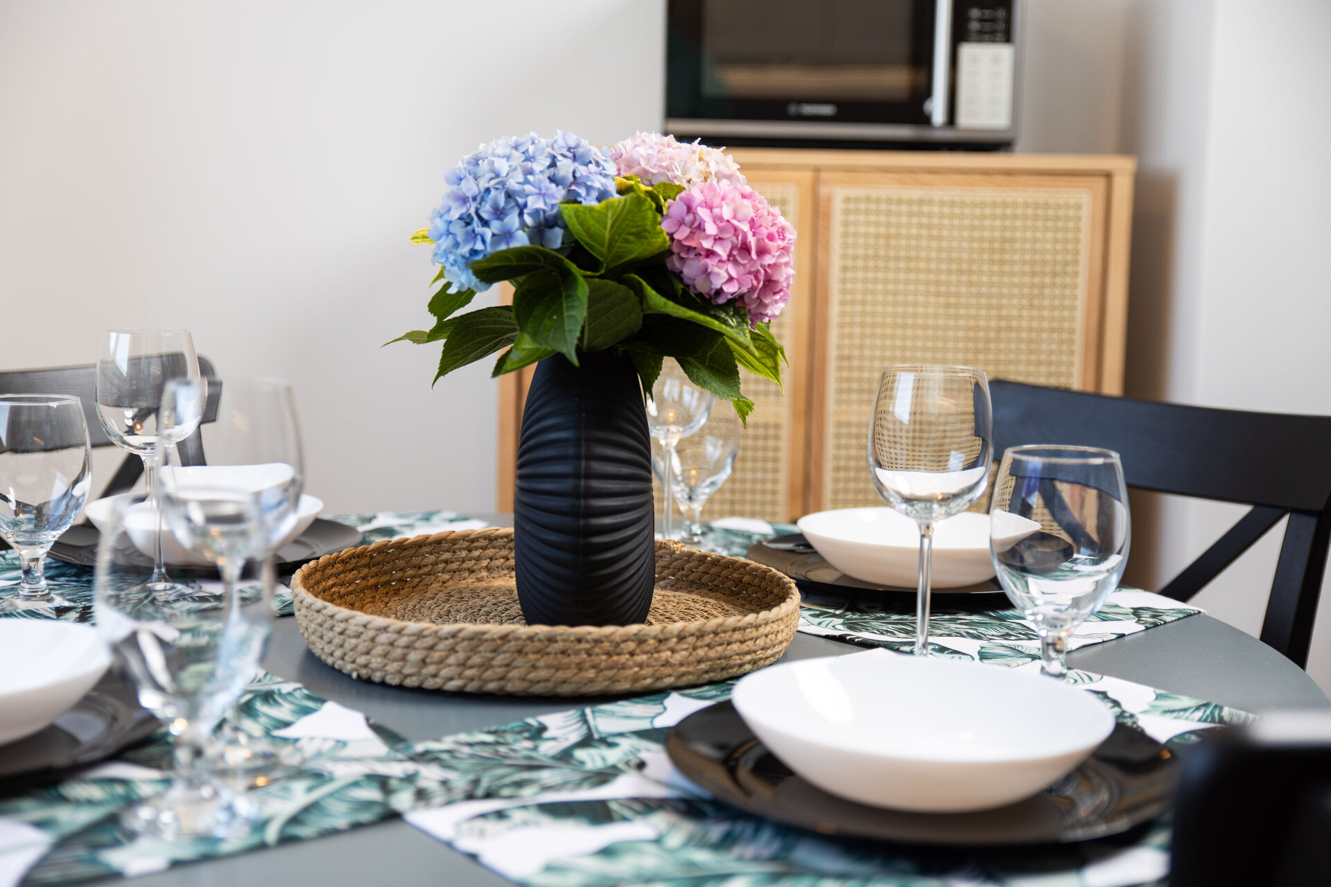 • stol i stolice, sudoper, pećnica, frižider, zamrzivač, aparat - kuhalo za vodu, aparat za filter kafu, pegla, ploča za kuhanje.