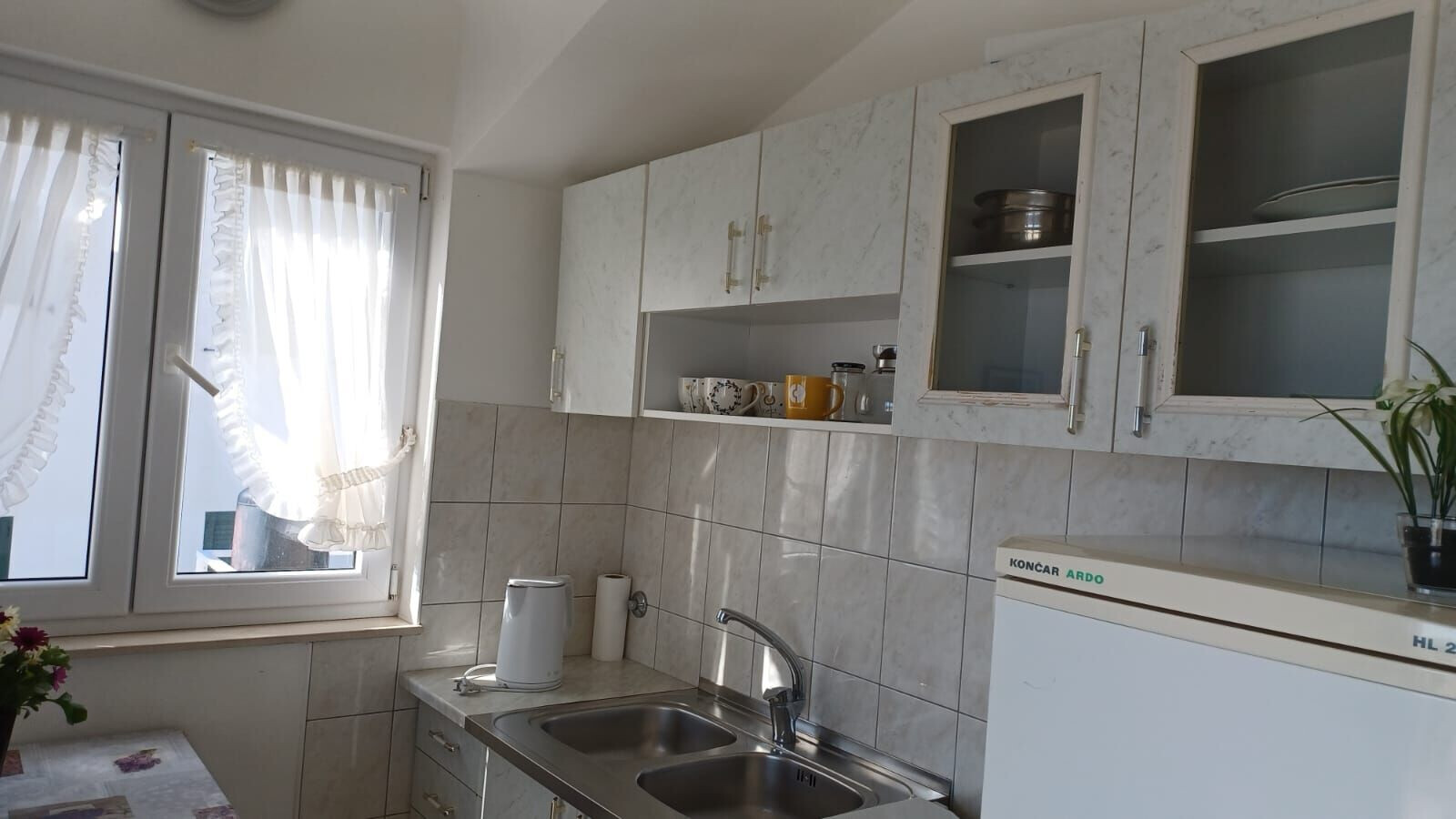 • stol i stolice, sudoper, pećnica, frižider, zamrzivač, aparat - kuhalo za vodu, ploča za kuhanje.