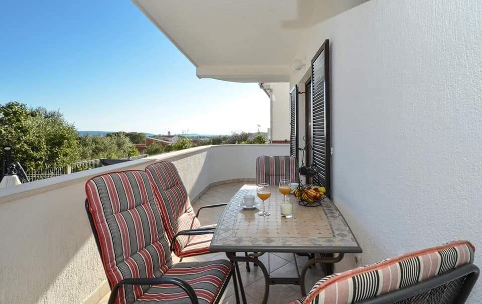 • garnitura za sjedenje na balkonu, privatna terasa / balkon.