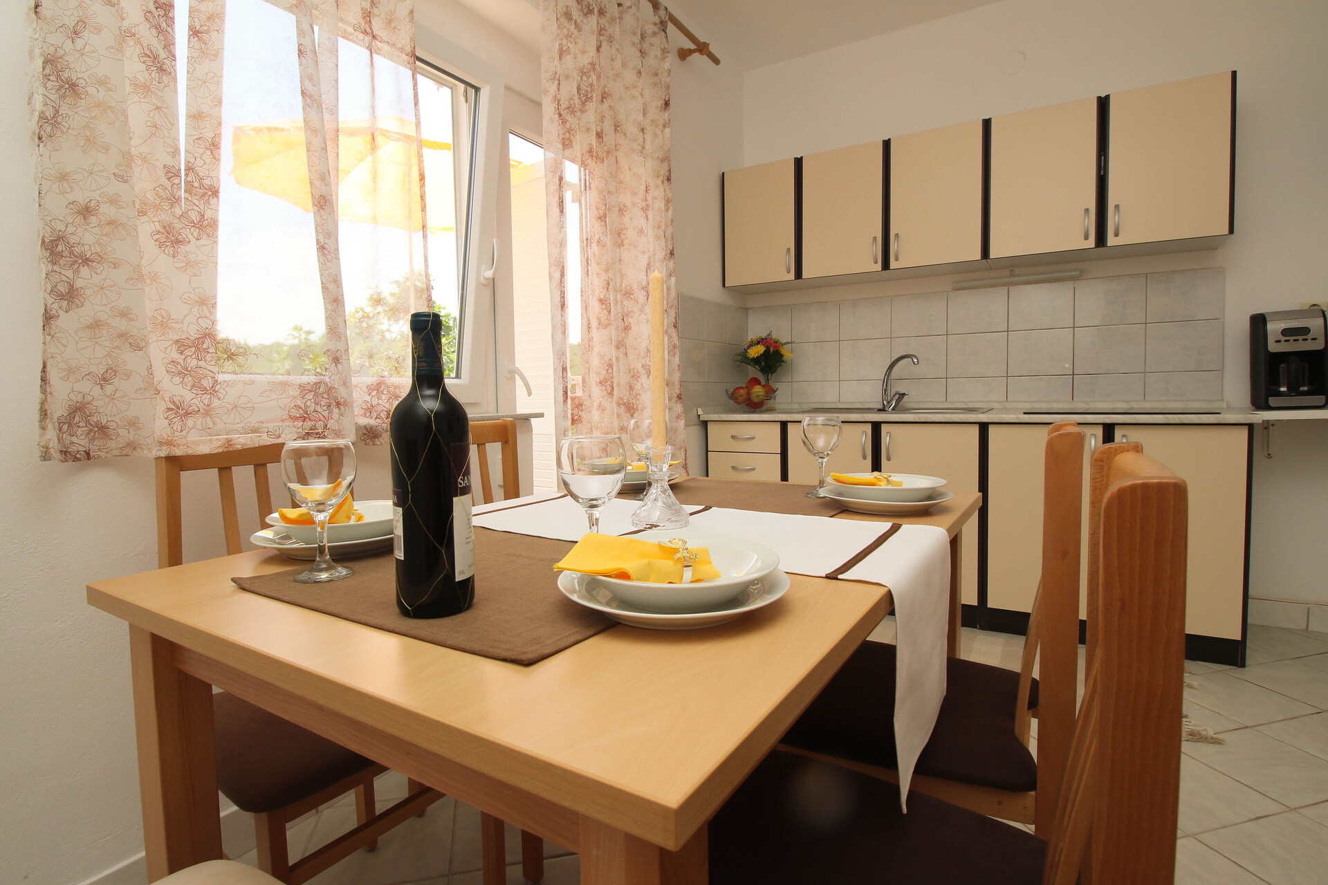 • besplatan wifi, pogled na vrt, kvadratura unutarnjeg prostora je 45 m2, jedinica se nalazi na prvom katu, spavaćih soba: 2, kupatila: 1, balkona: 1, TV, satelitski programi, klima uređaj uračunat u cijenu.