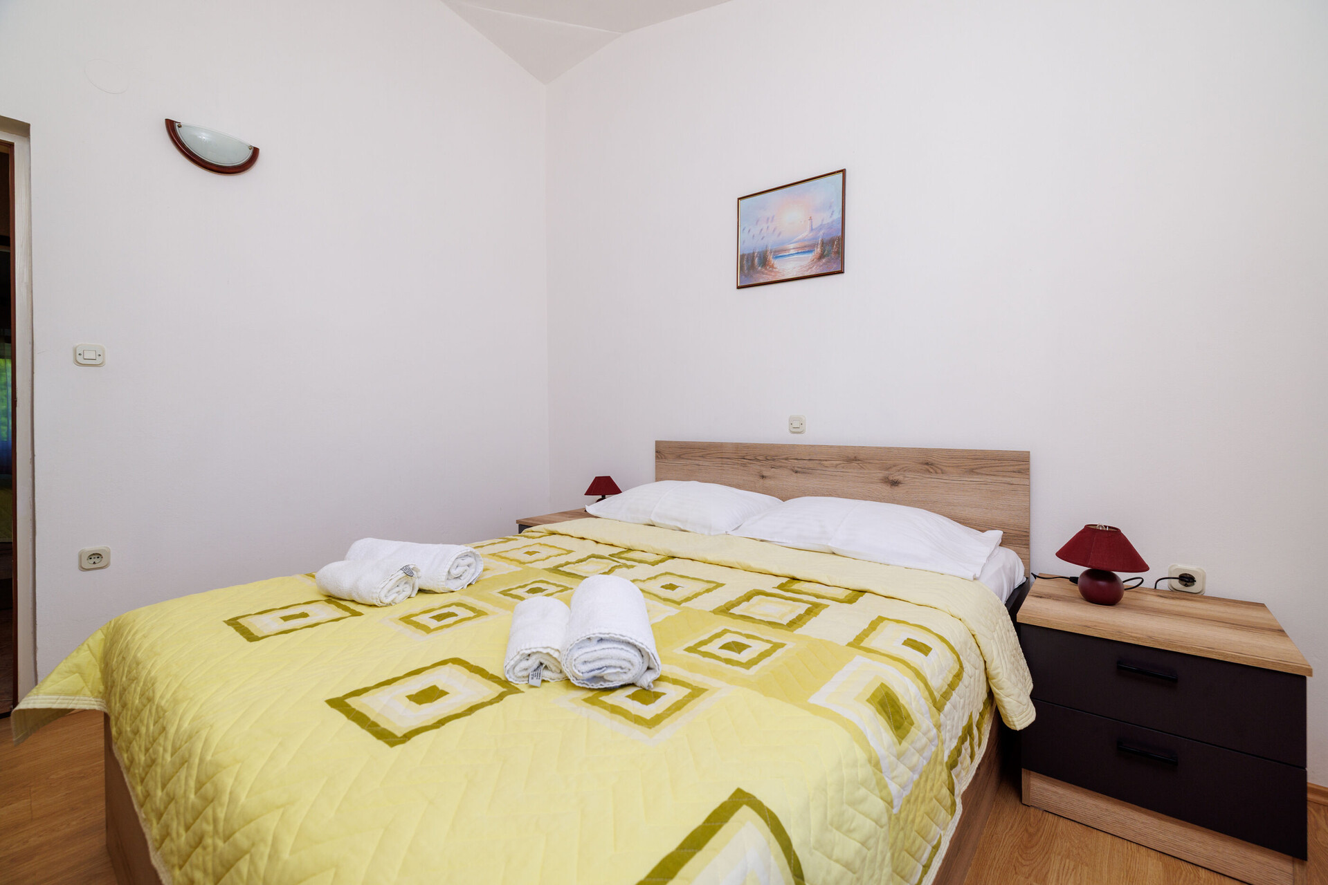 • Kreveti: bračni krevet. Posteljina je dostupna. Iz sobe se izlazi na balkon.