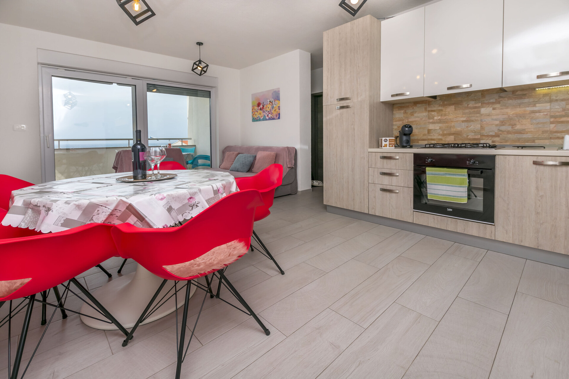 • besplatan wifi, djelomični pogled na more, kvadratura unutarnjeg prostora je 55 m2, jedinica se nalazi na prvom katu, spavaćih soba: 2, kupatila: 1, balkona: 1, klima uređaj uračunat u cijenu, TV.