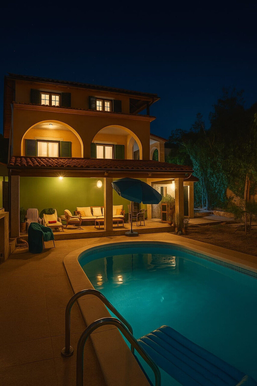 besplatan wifi, djelomični pogled na more, kvadratura unutarnjeg prostora je 130 m2, spavaćih soba: 4, kupatila: 5, balkona: 1, klima uređaj uračunat u cijenu, TV, satelitski programi.