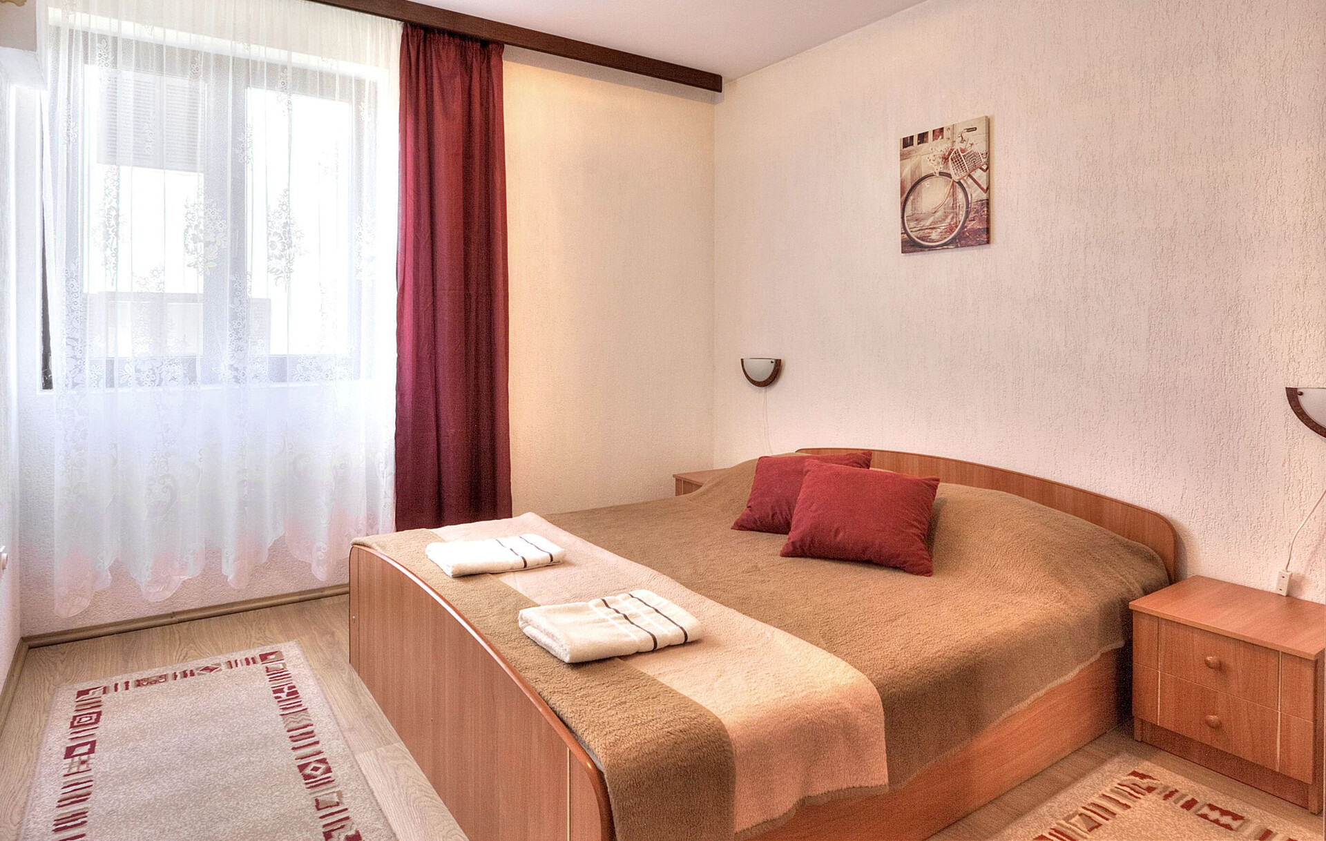 • wifi included in the price, Total surface area of the interior is: 55 m2, Unit is on: at the first floor, Bedrooms: 2, bathrooms: 1, balconies: 1, TV set, satellite tv, air conditioning included in the price.
