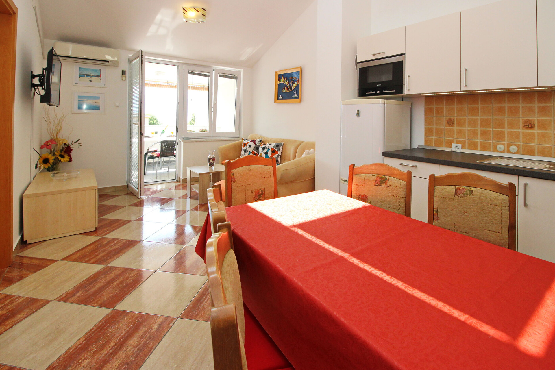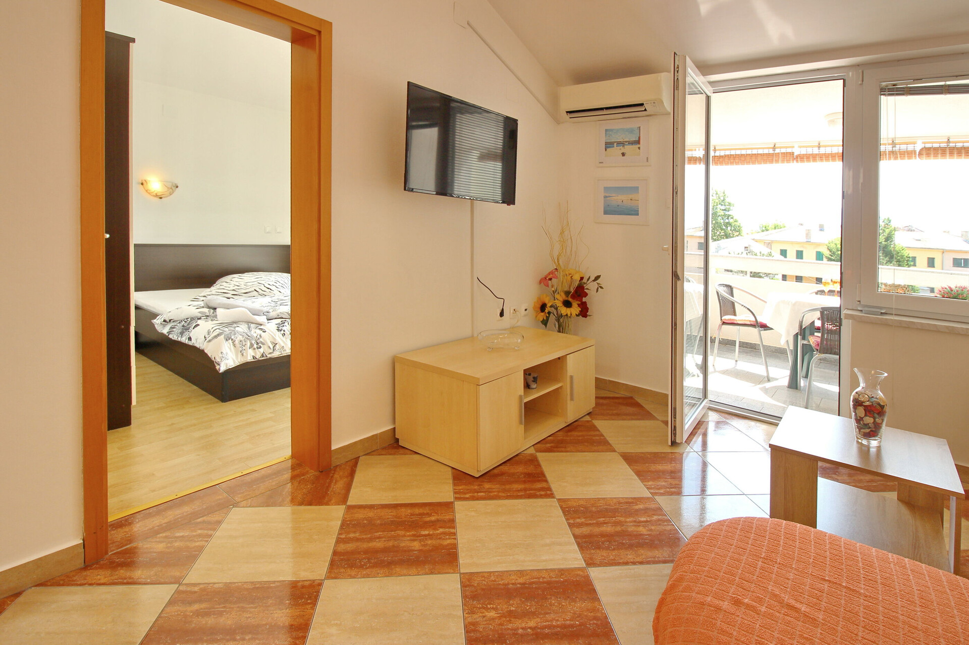 • wifi included in the price, Total surface area of the interior is: 45 m2, Unit is on: on the ground floor, Bedrooms: 2, bathrooms: 1, balconies: 1, TV set, satellite tv, air conditioning included in the price.