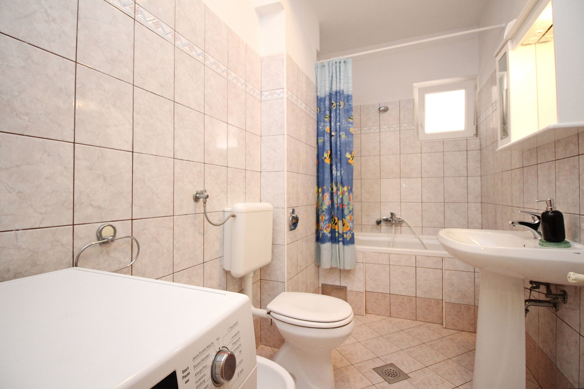 • bathtub, washing machine, towels.