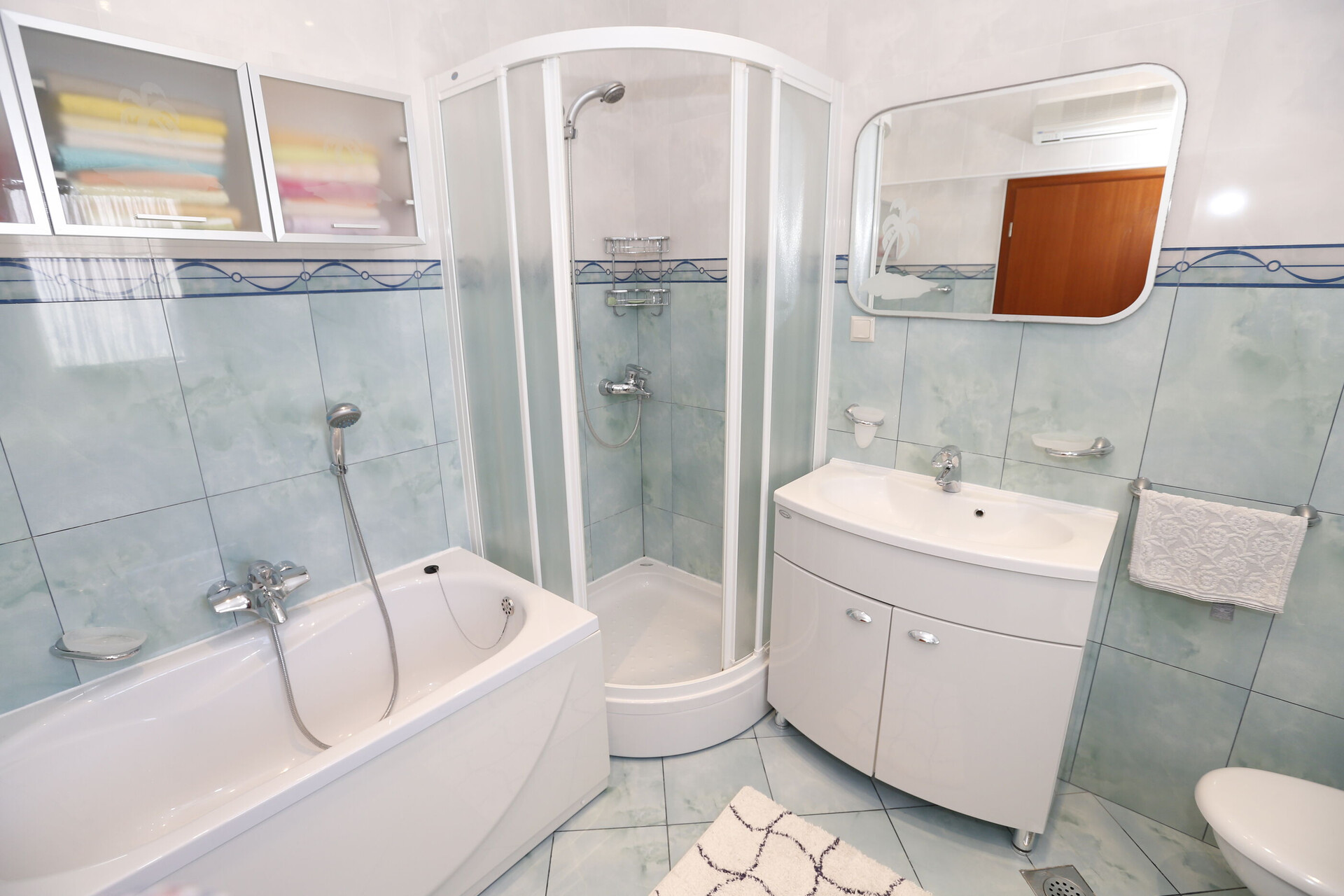 • wifi included in the price, sea view, Total surface area of the interior is: 90 m2, Unit is on: at the first floor, Bedrooms: 2, bathrooms: 1, balconies: 1, air conditioning included in the price, TV set, satellite tv.