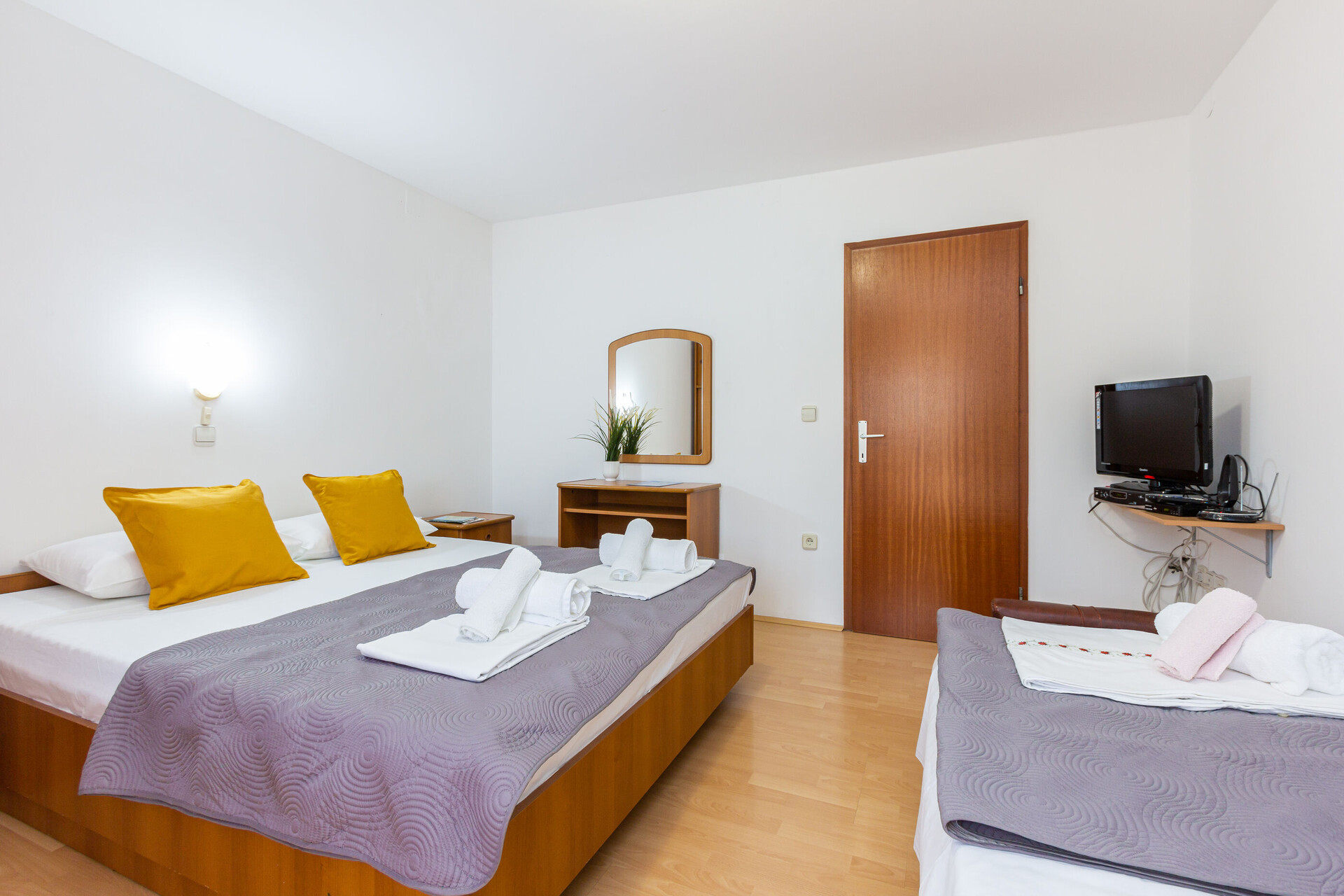 • Beds: Double bed. Room has an extra bed: one extra bed. Bedding is available.
