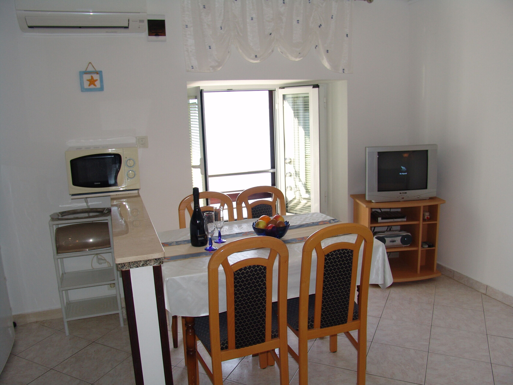 • wifi included in the price, sea view, Total surface area of the interior is: 62 m2, Unit is on: on the second floor, Bedrooms: 2, bathrooms: 1, balconies: 0, air conditioning included in the price, TV set, satellite tv.