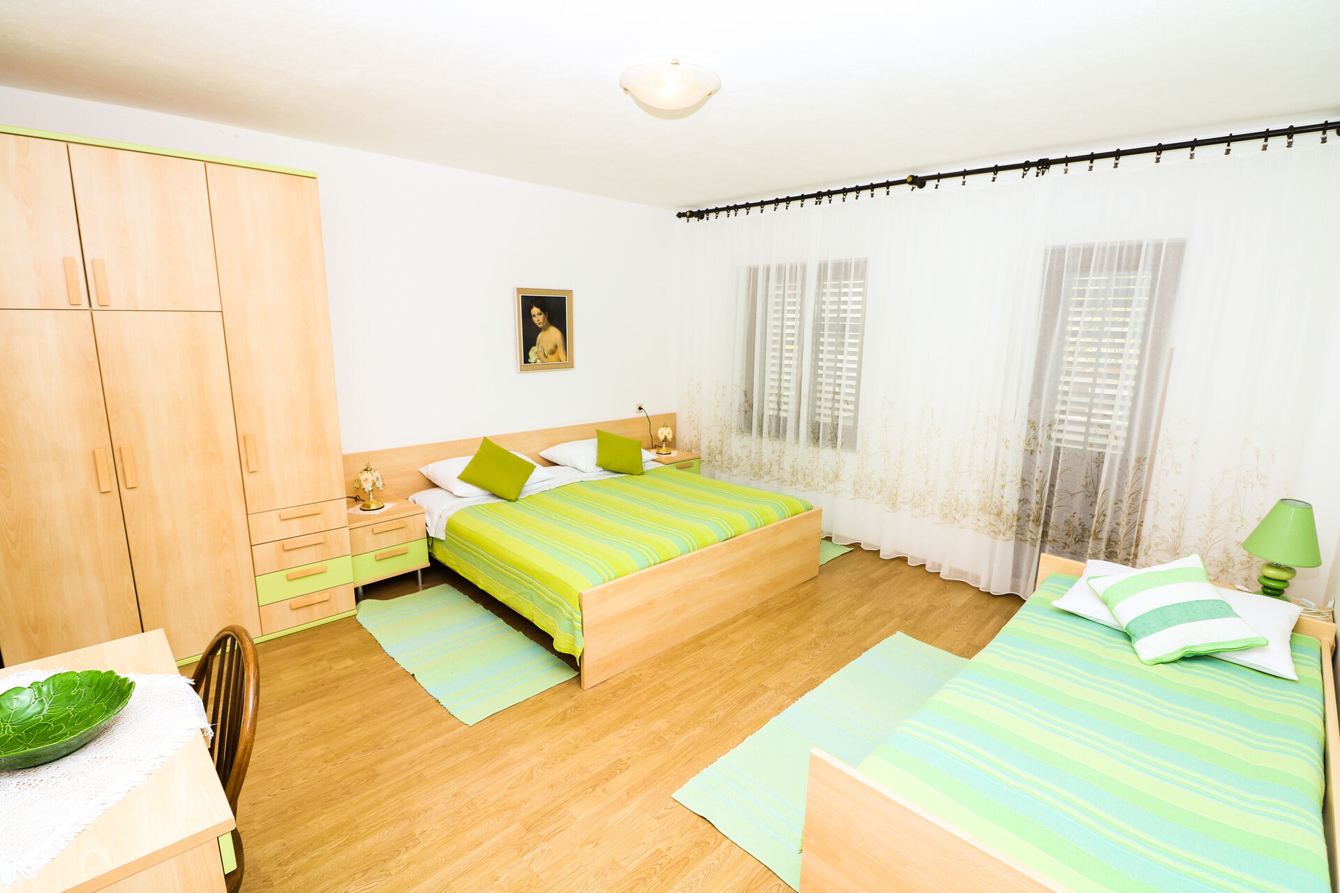 • Beds: Double bed, single bed. Bedding is available.