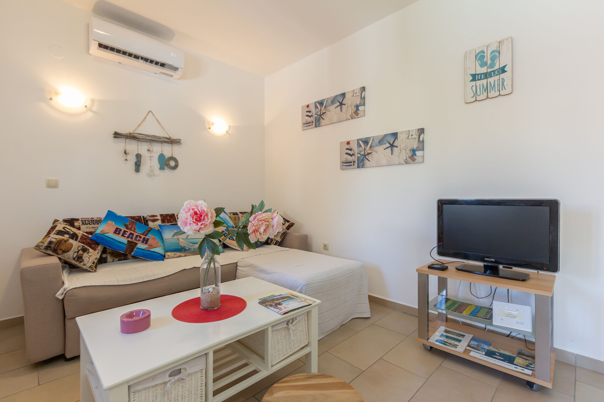 • wifi included in the price, garden view, Total surface area of the interior is: 45 m2, Unit is on: at the first floor, Bedrooms: 2, bathrooms: 1, balconies: 0, air conditioning included in the price, TV set, satellite tv.