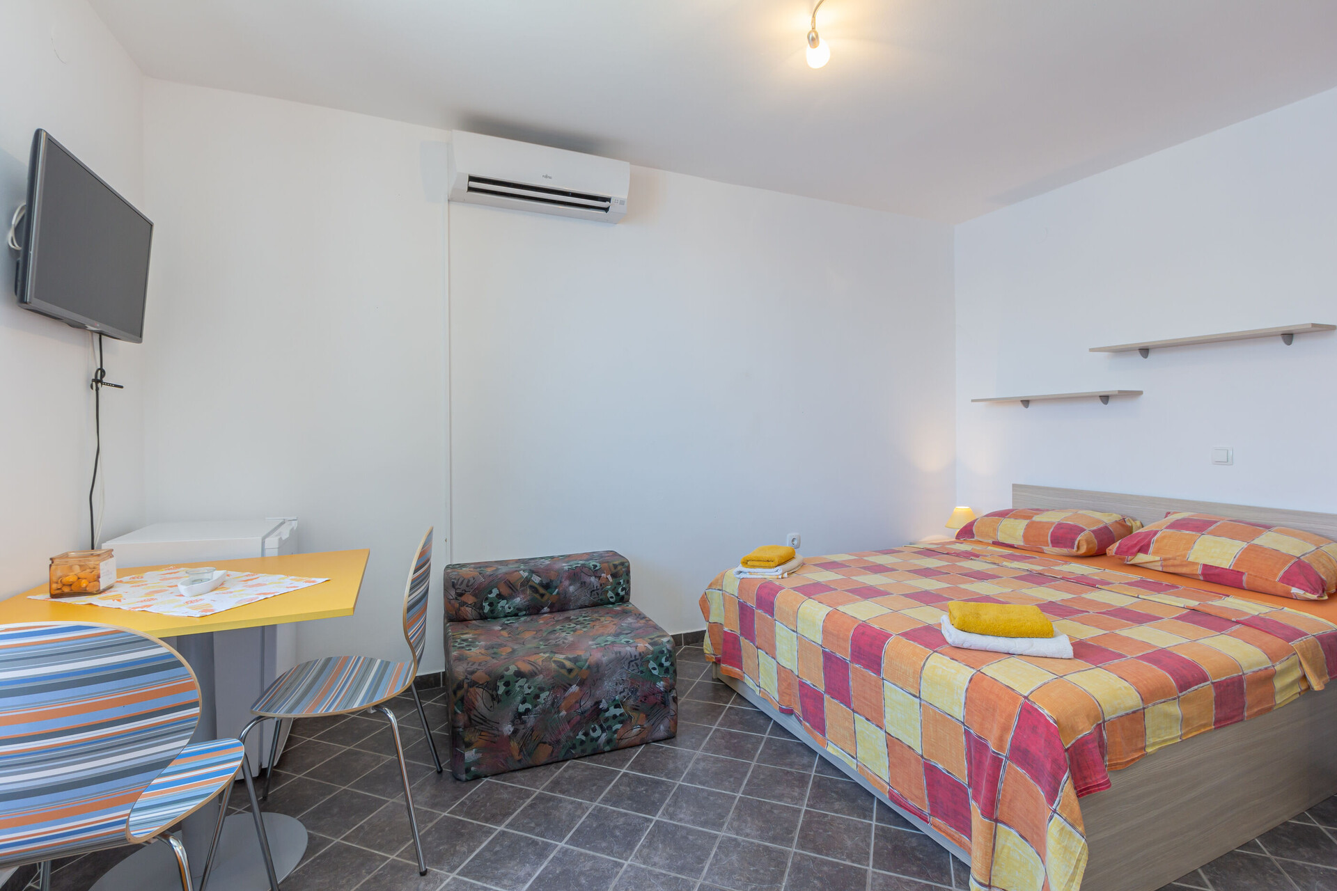 • air conditioning included in the price, TV set, satellite tv.