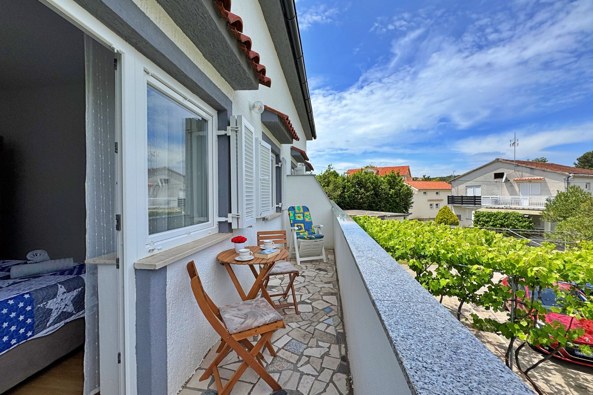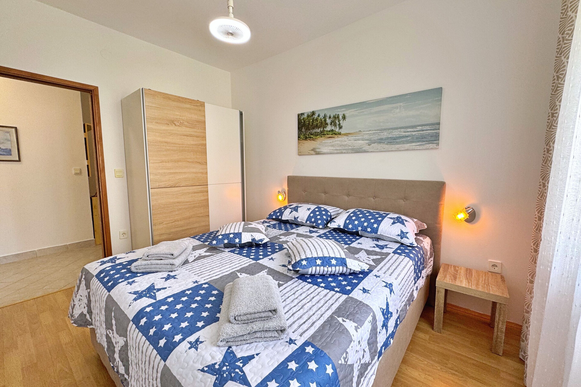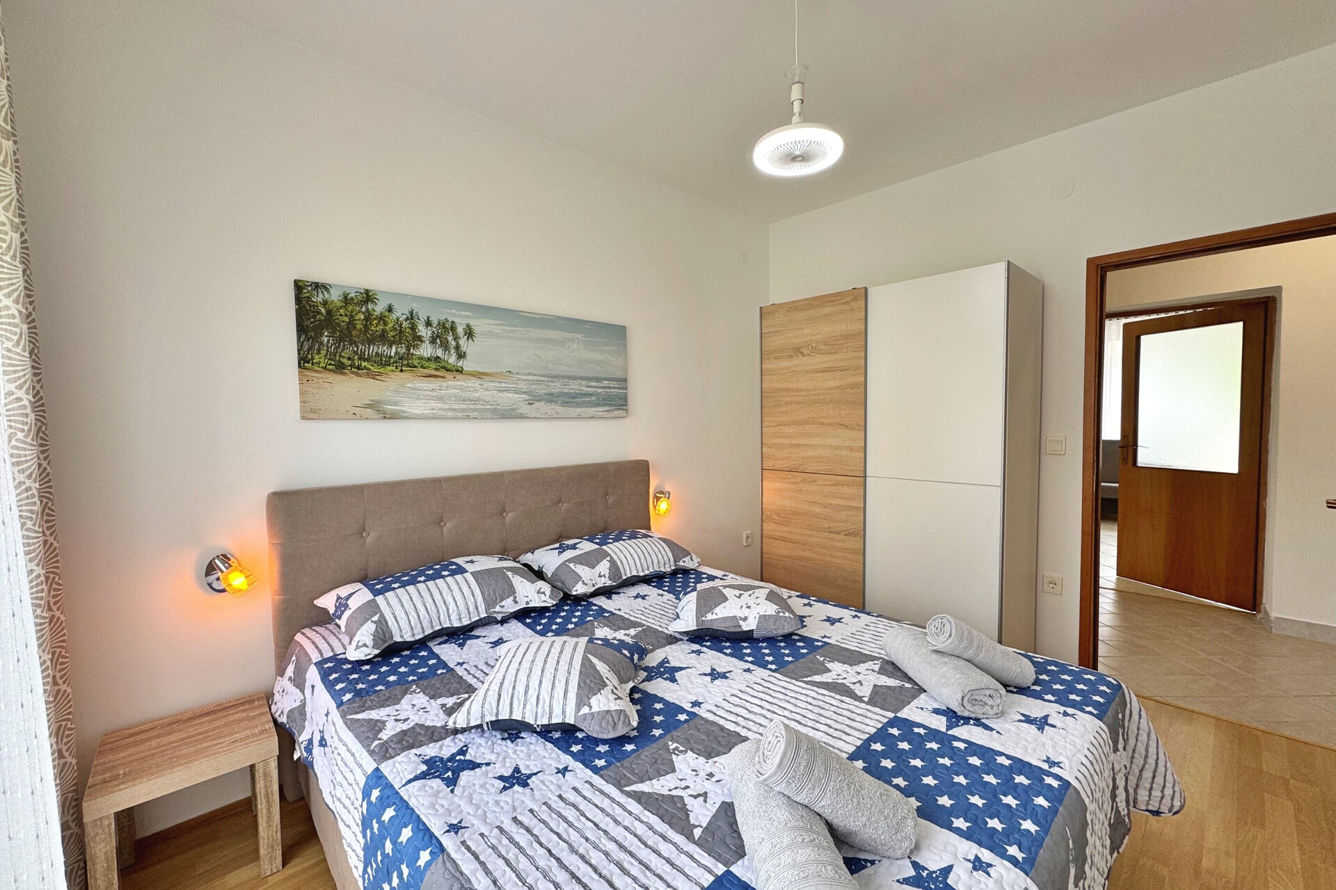 • Beds: Double bed. Bedding is available. Room has an exit to the balcony.