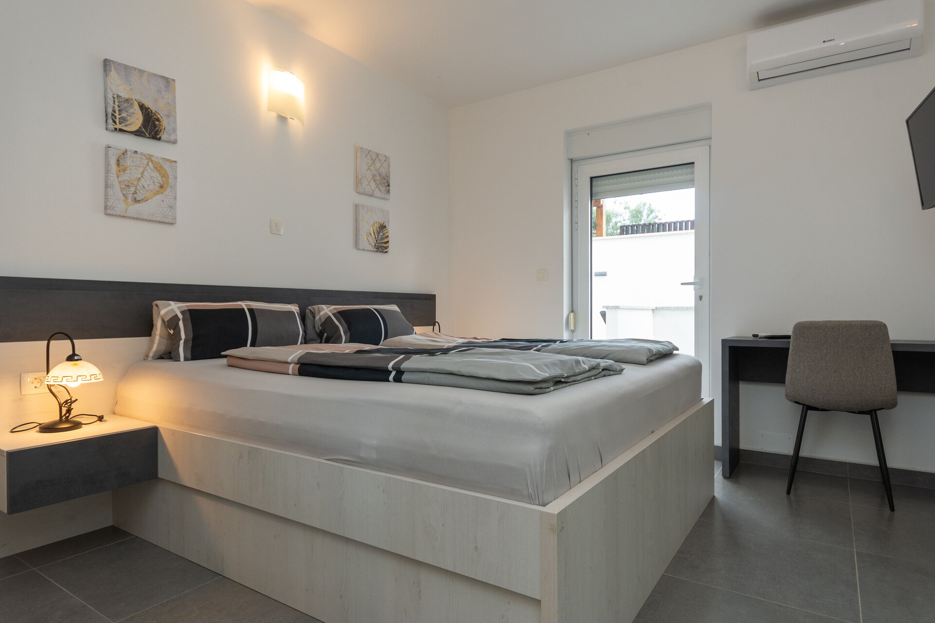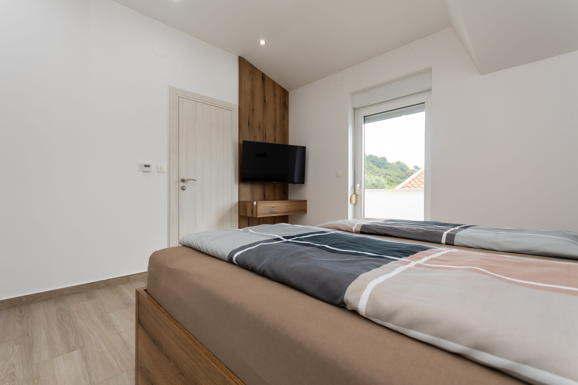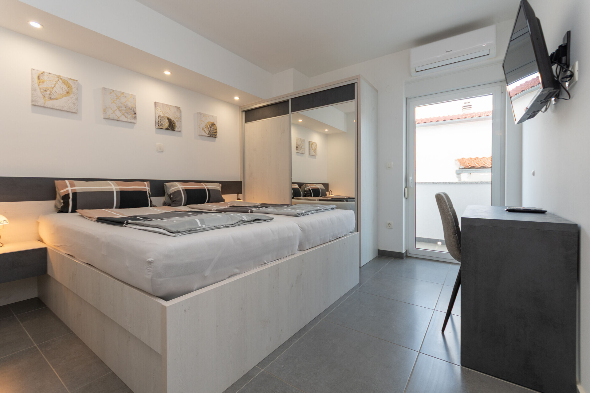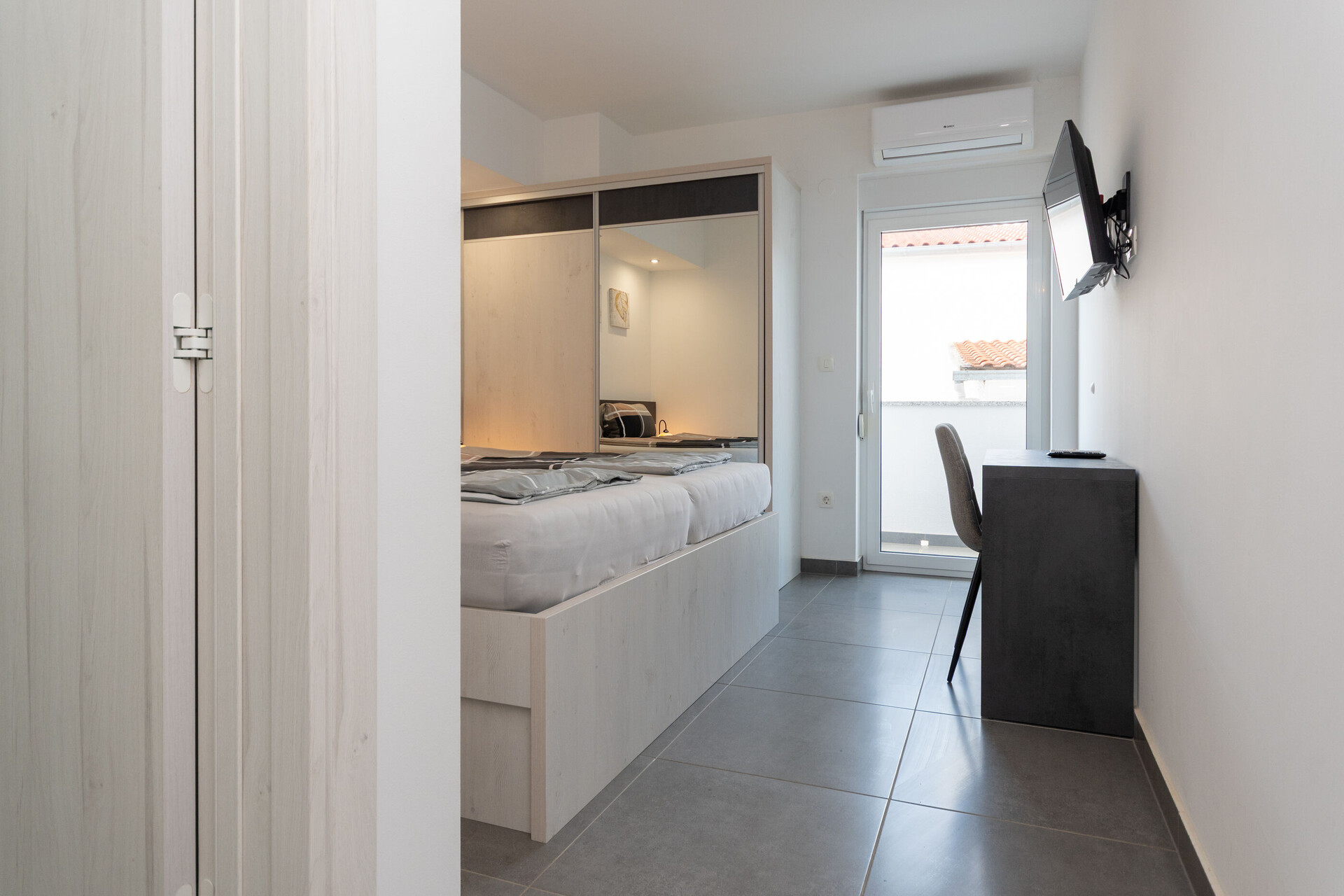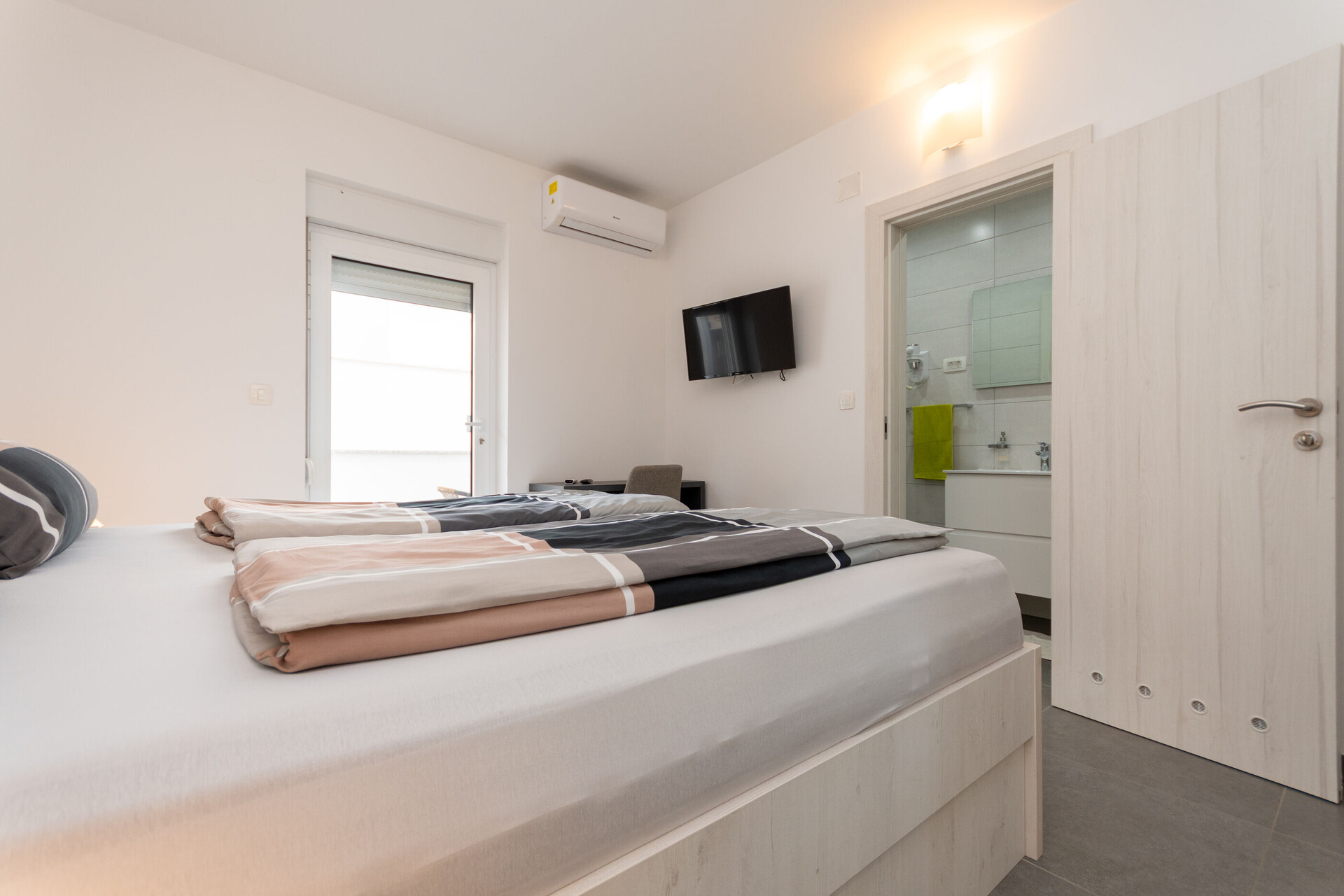 • Beds: Double bed. Bedding is available. Room has an exit to the balcony.