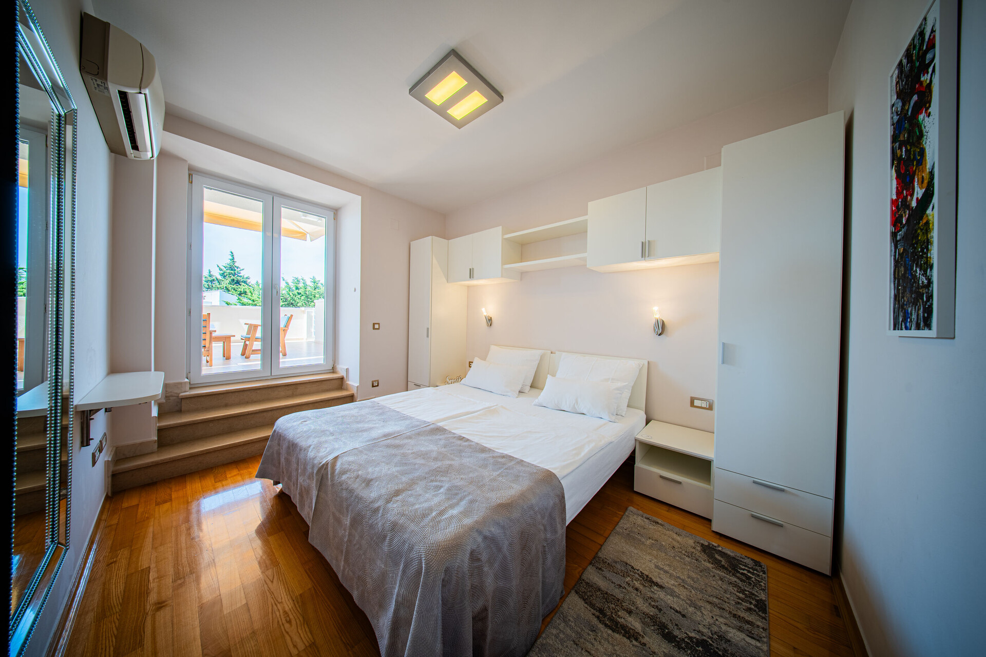 • Beds: Double bed. Bedding is available. Room has an exit to the balcony.