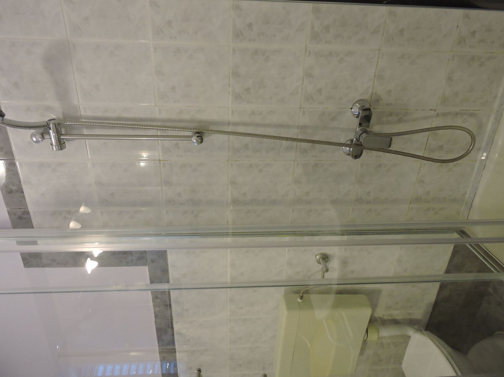 • shower, shower enclosure, hairdryer, towels.