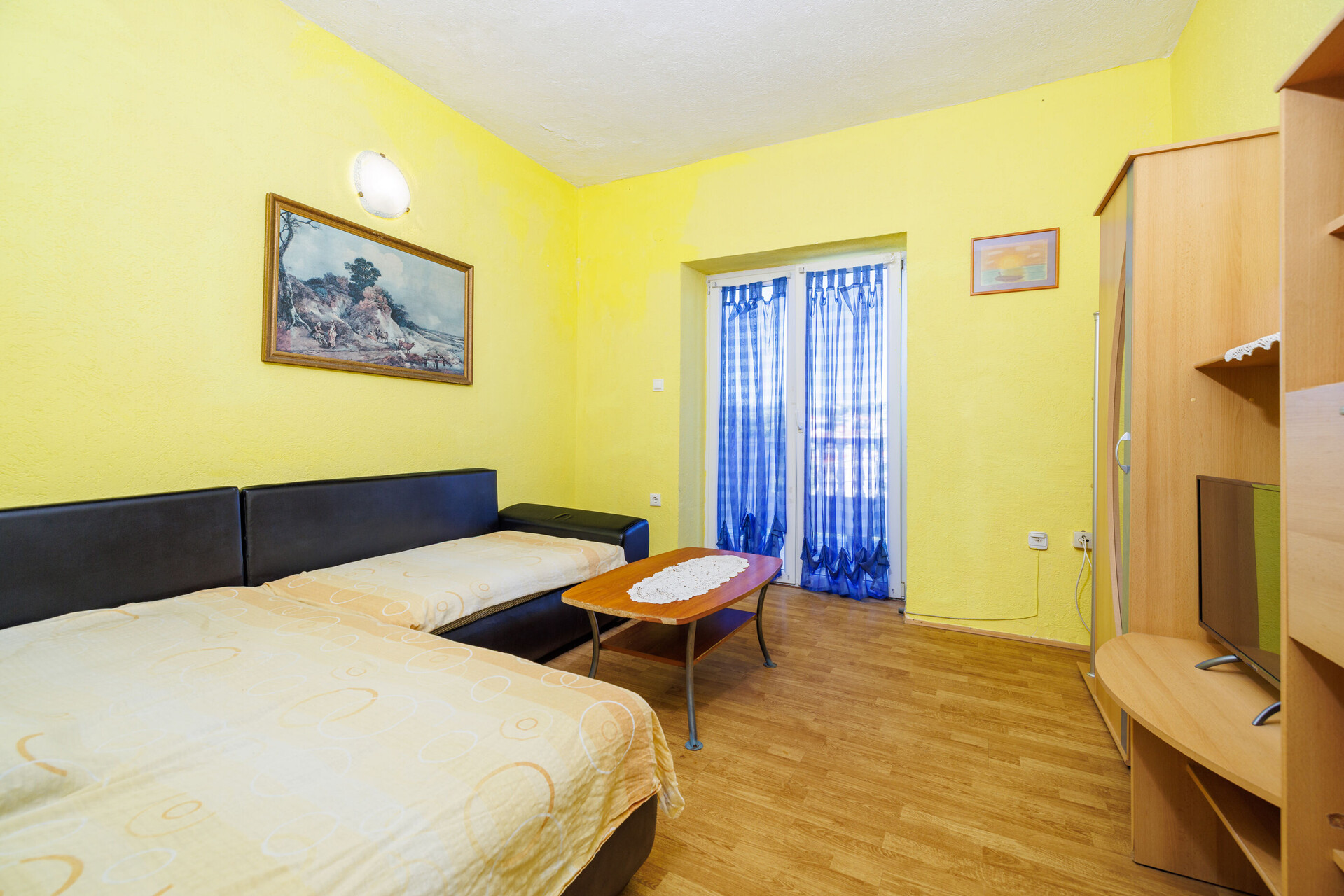 • Beds: Double bed. Bedding is available. Room has an exit to the balcony.