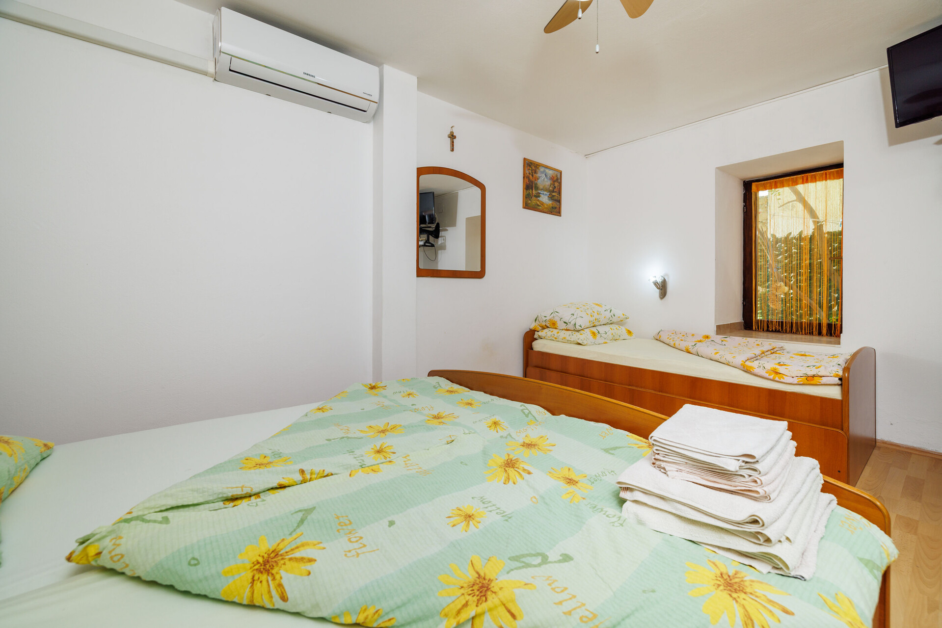 • Beds: Double bed. Room has an extra bed: two extra beds. Bedding is available. Room has an exit to the balcony.