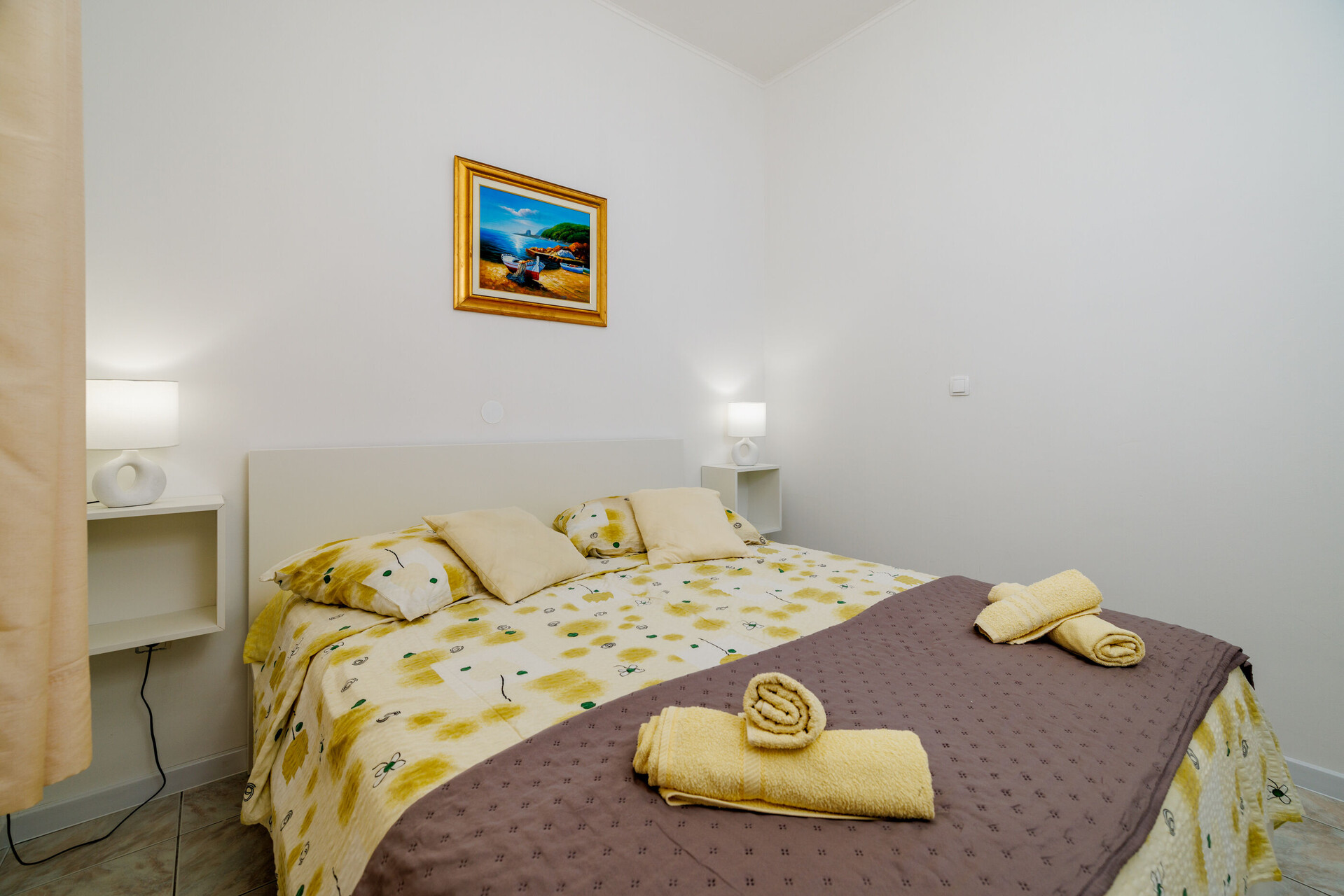 • wifi included in the price, sea view, Total surface area of the interior is: 70 m2, Unit is on: at the first floor, Bedrooms: 2, bathrooms: 1, balconies: 1, air conditioning included in the price, TV set, satellite tv.