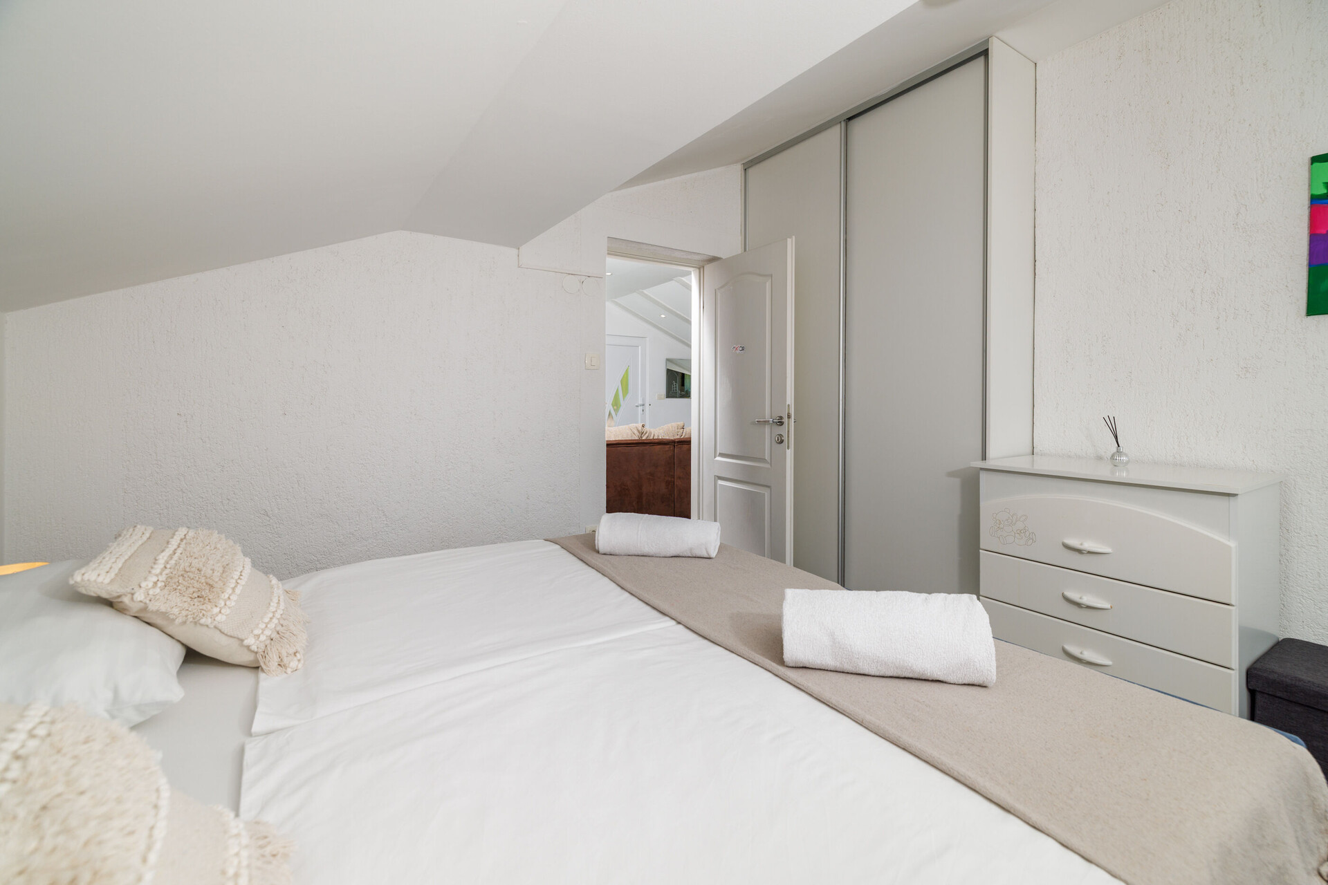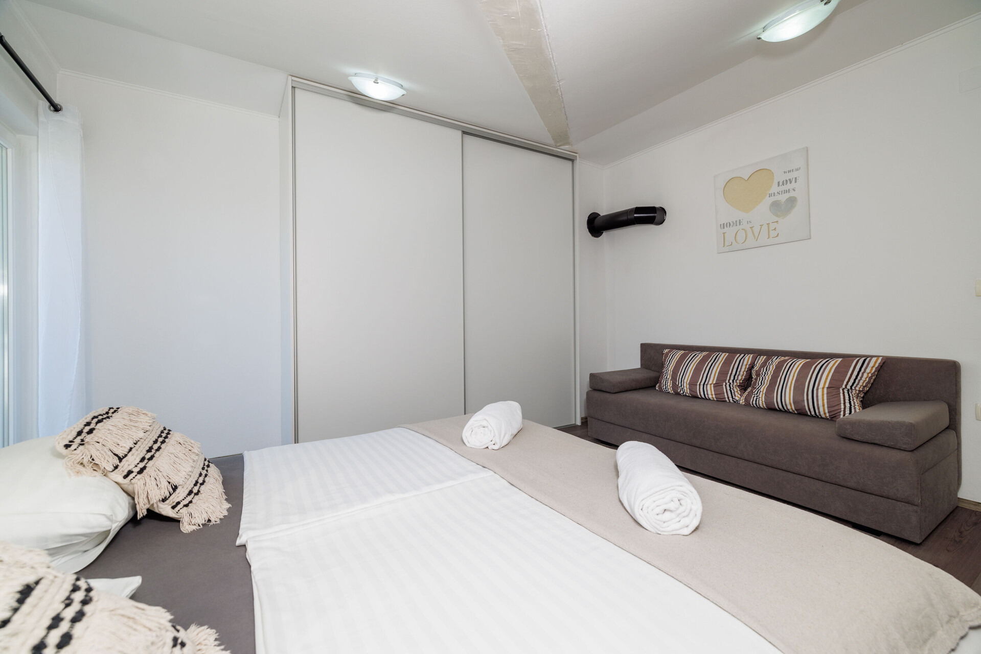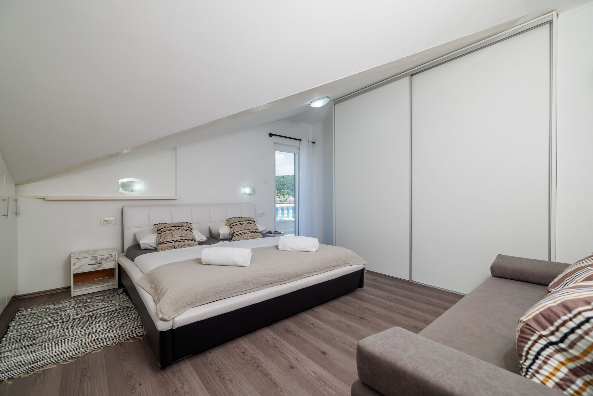 • Beds: Double bed. Bedding is available. Room has an exit to the balcony.