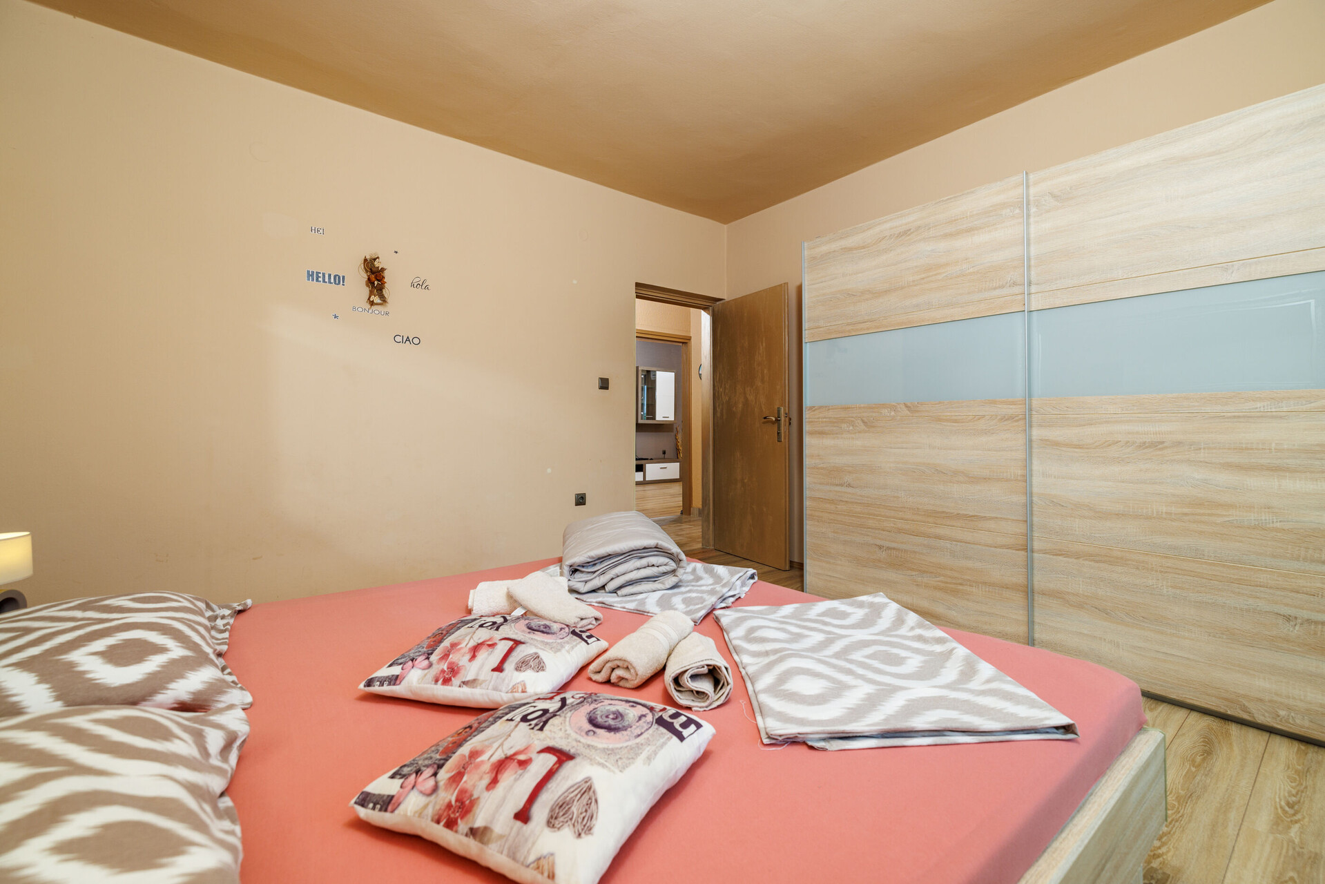 • Beds: Double bed. Bedding is available. Room has an exit to the balcony.