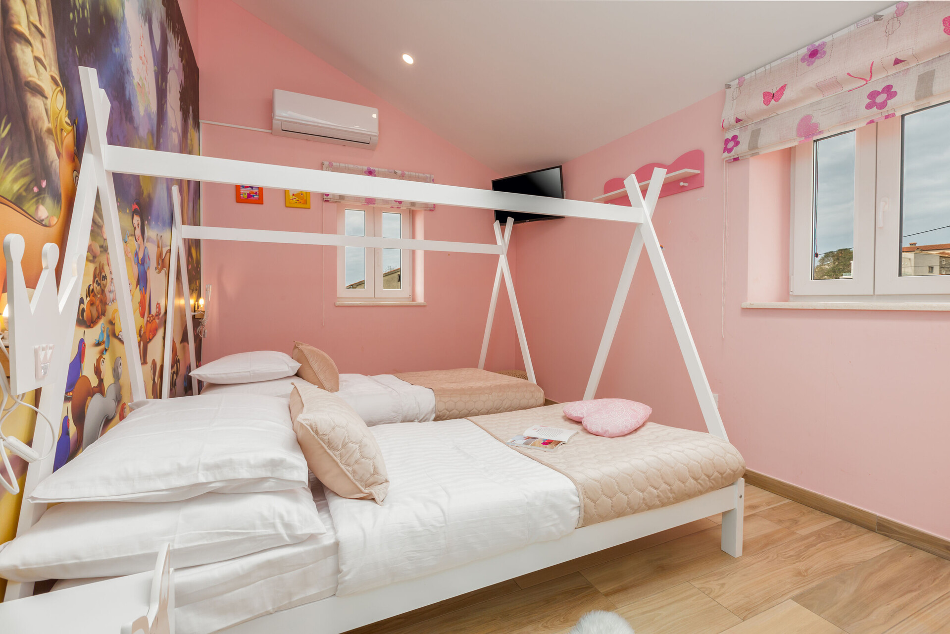 • air conditioning included in the price, TV set, satellite tv, safe.