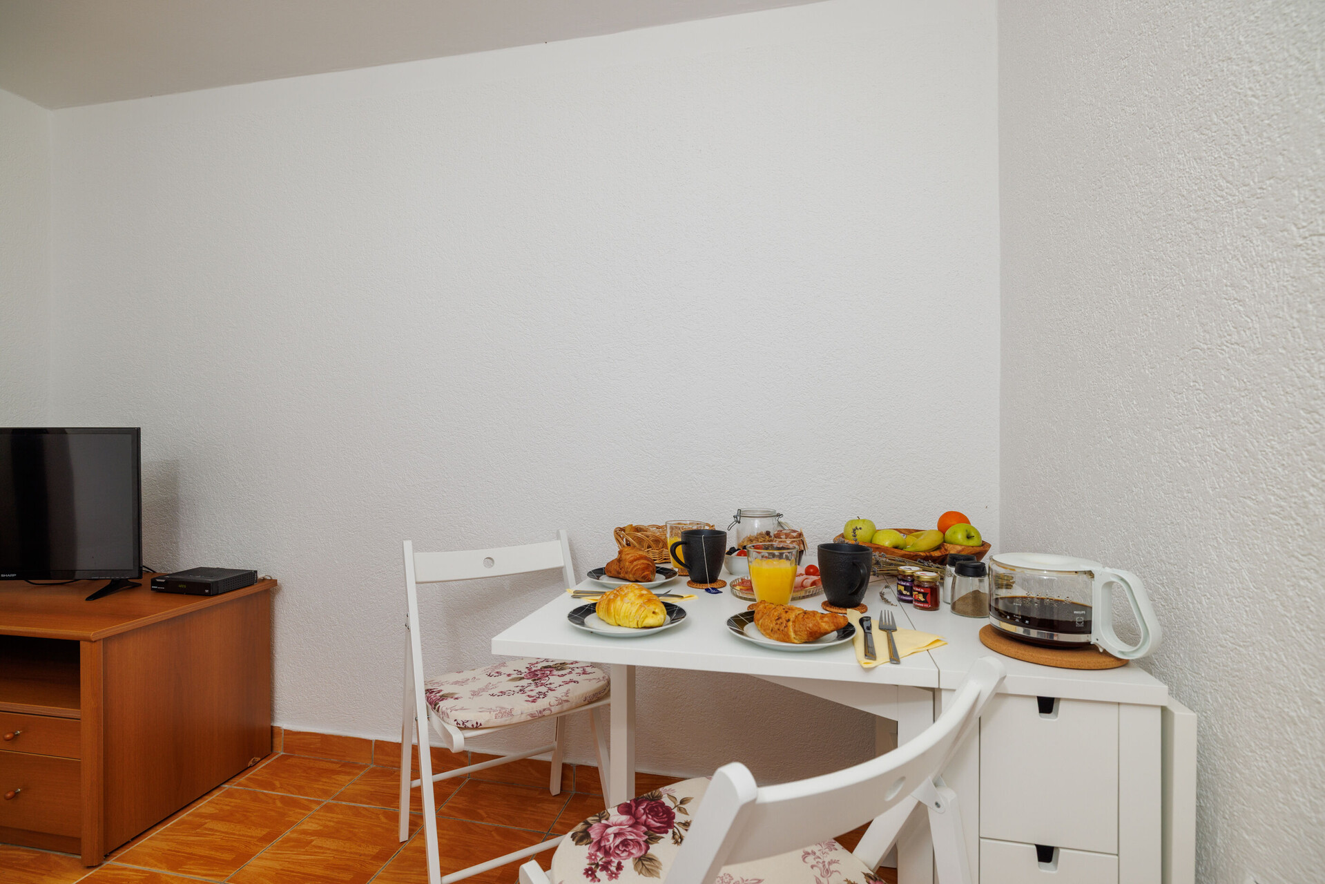 • air conditioning included in the price, TV set, satellite tv.