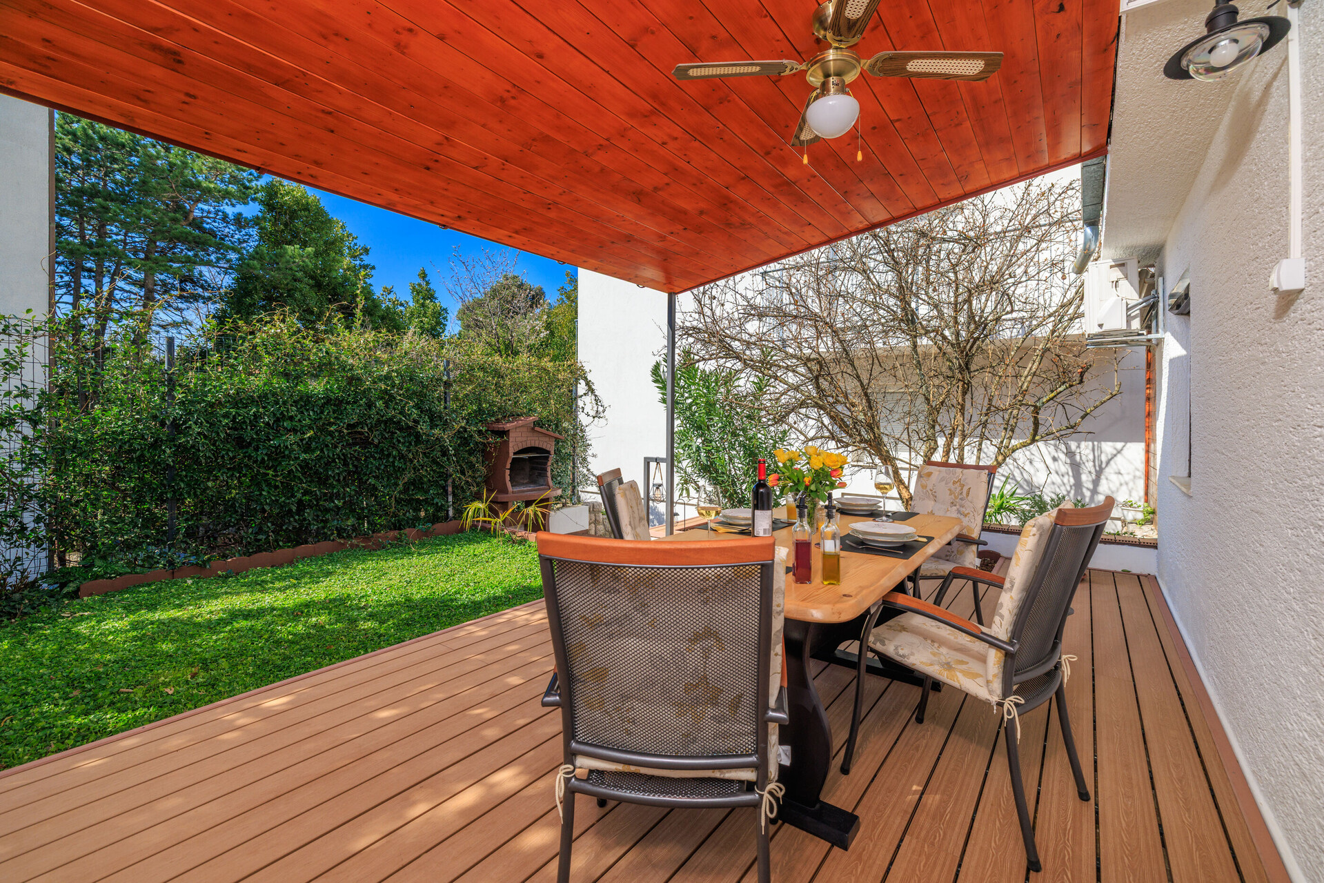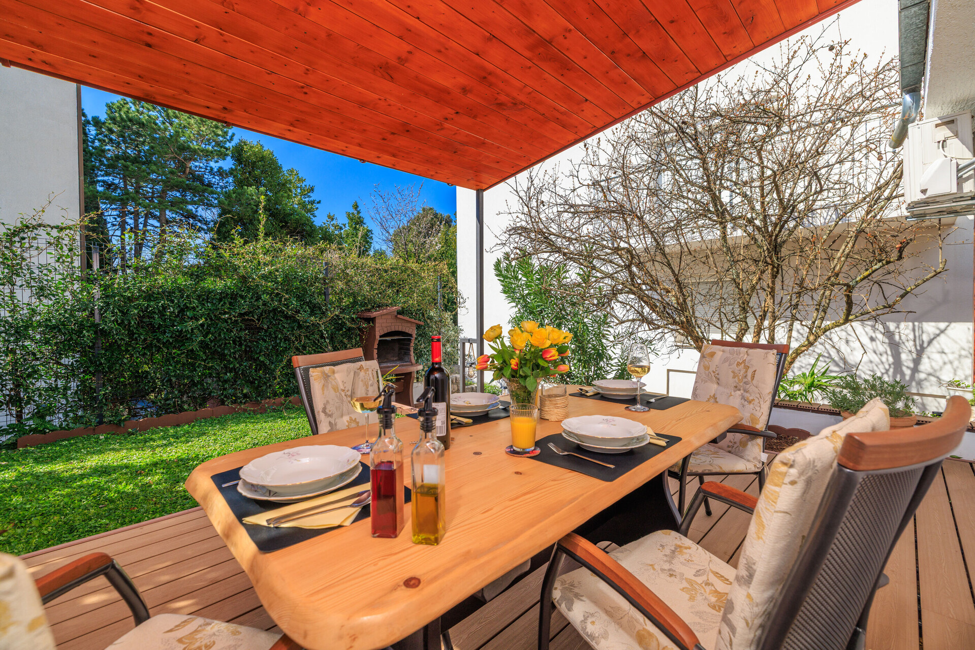 • wifi included in the price, garden view, Total surface area of the interior is: 90 m2, Unit is on: on the ground floor, Bedrooms: 2, bathrooms: 1, balconies: 1, air conditioning included in the price, TV set, satellite tv.