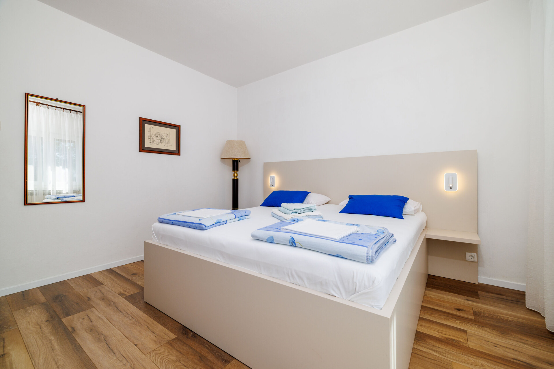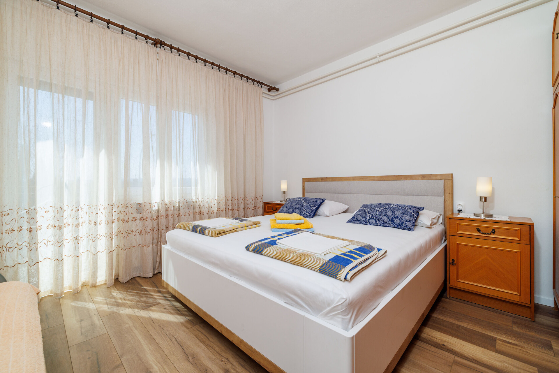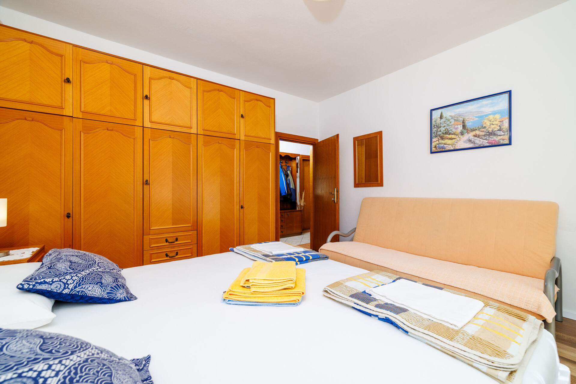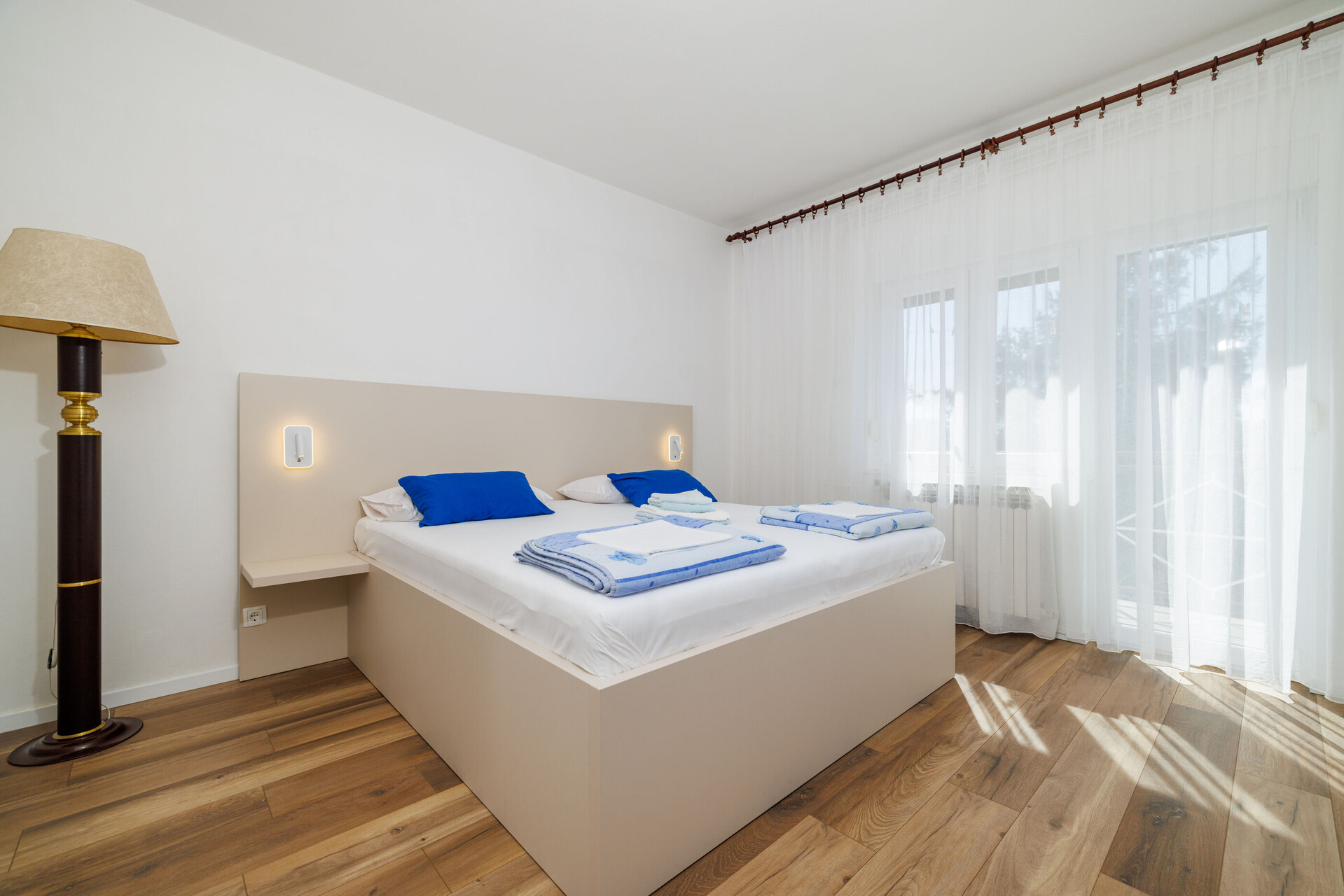 • Beds: Double bed. Room has an extra bed: one extra bed. Bedding is available. Room has an exit to the balcony.