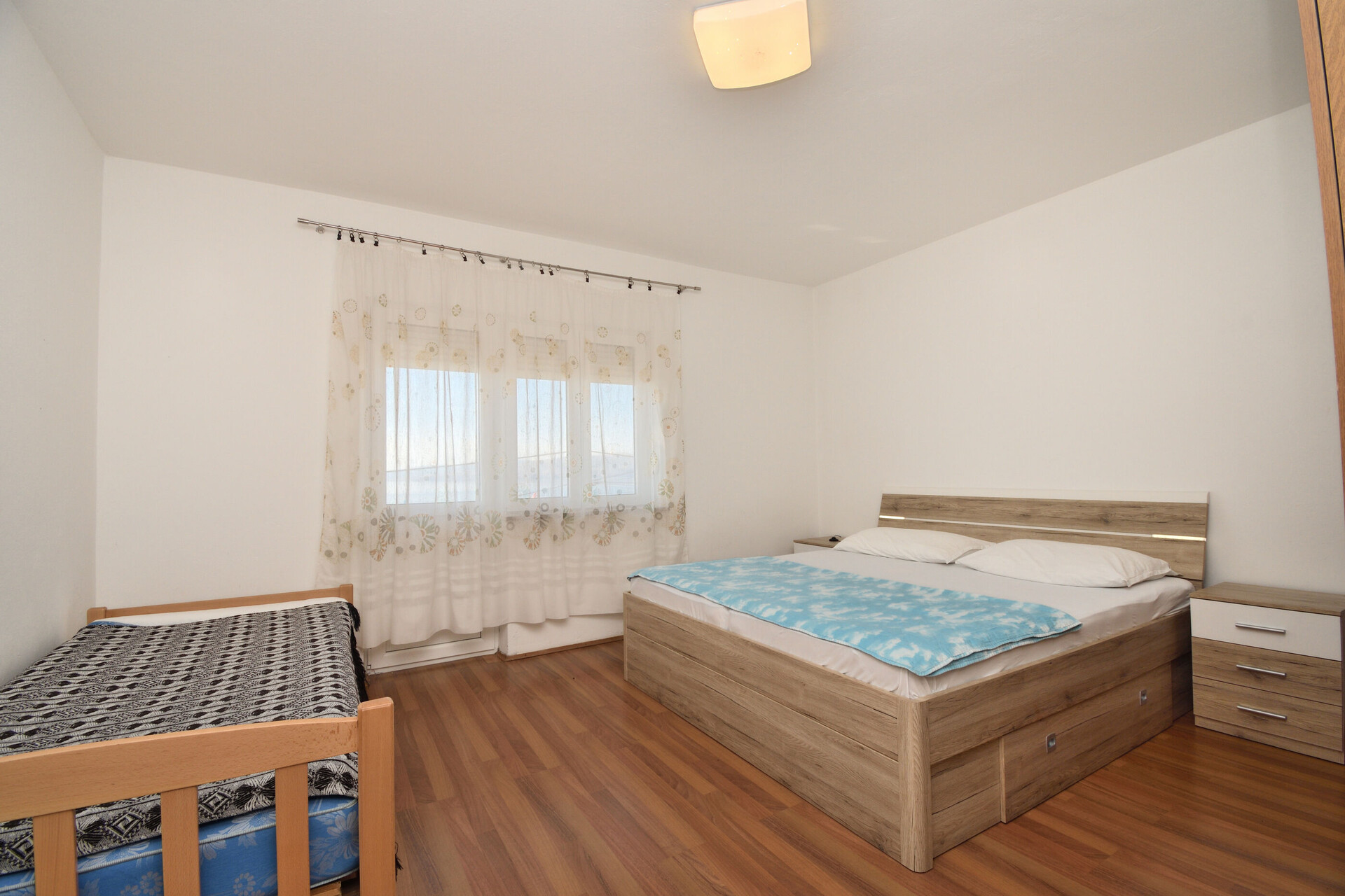 • Beds: Double bed. Room has an extra bed: one extra bed. Bedding is available. Room has an exit to the balcony.
