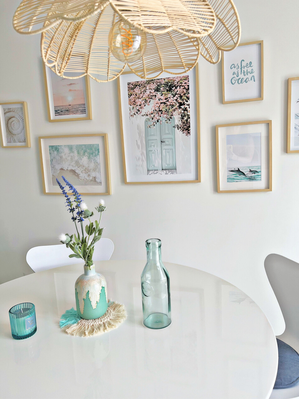 • table and chairs, kitchen sink, oven, refrigerator, upright freezer, electric kettle, filter coffee machine, toaster, dishwasher, iron, stove cooktop.