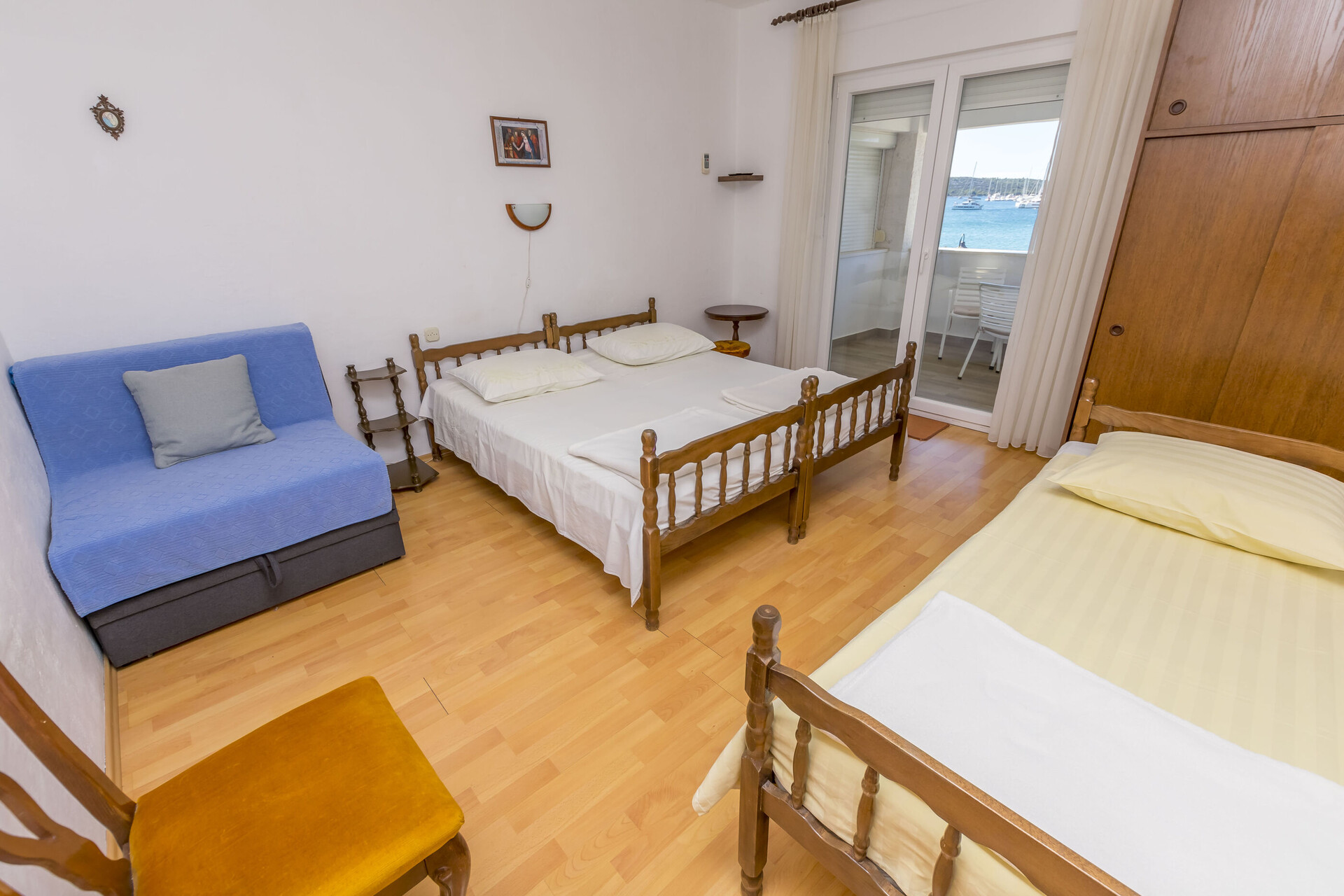• Beds: three single beds. Bedding is available. Room has an exit to the balcony.