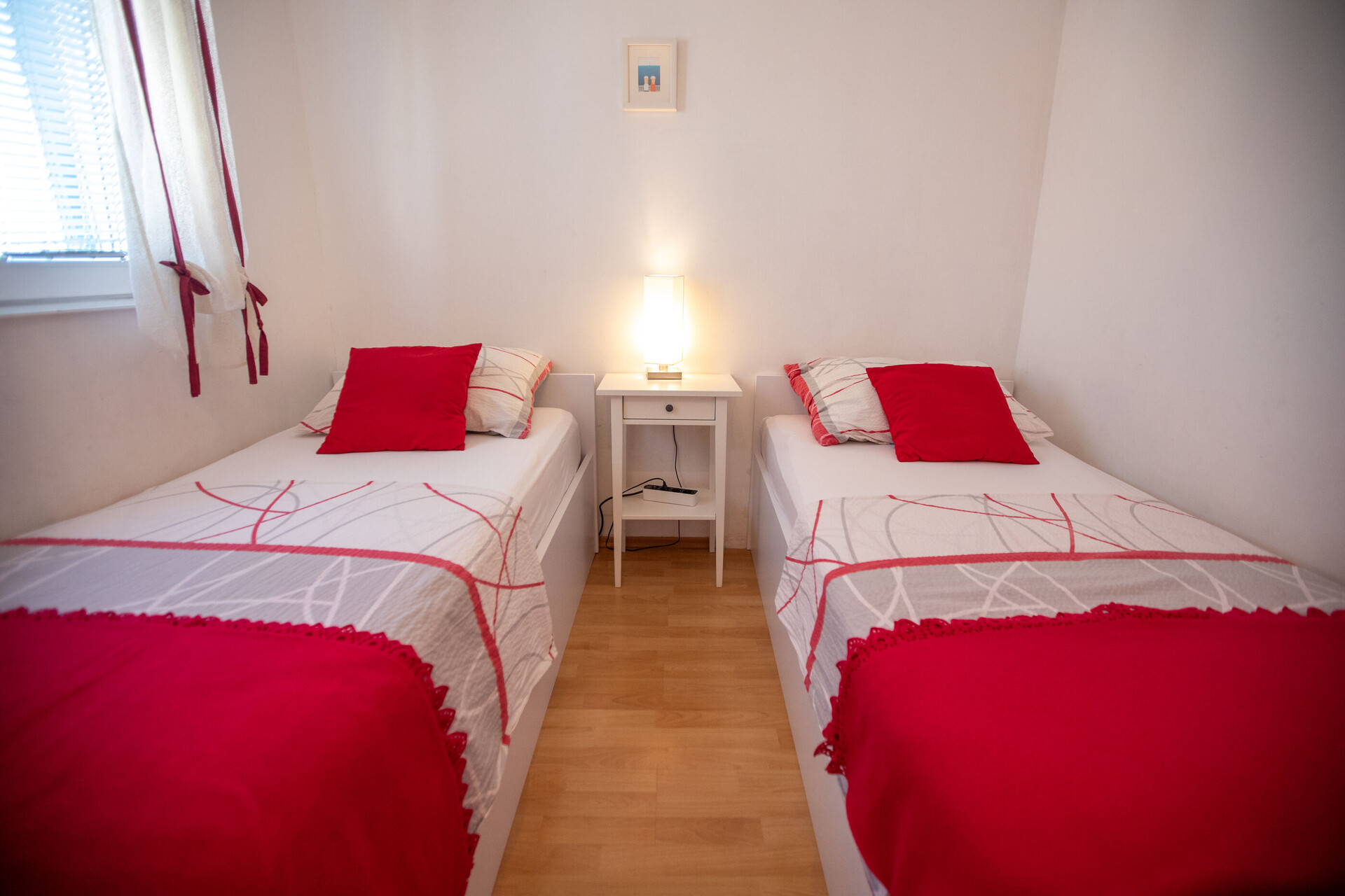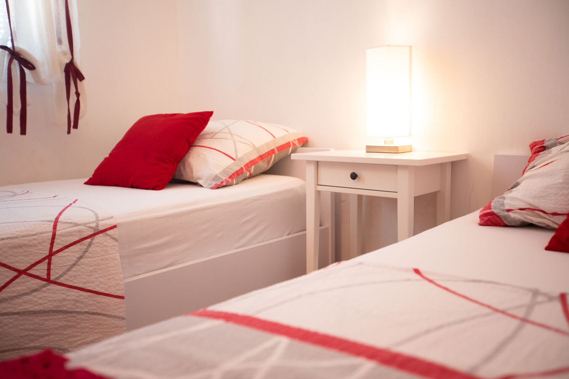 • Beds: two single beds. Bedding is available. Room has an exit to the balcony.