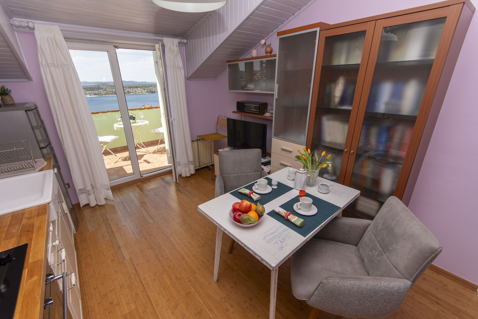 • wifi included in the price, sea view, Total surface area of the interior is: 65 m2, Unit is on: on the second floor, Bedrooms: 2, bathrooms: 1, balconies: 1, TV set, satellite tv, air conditioning included in the price.