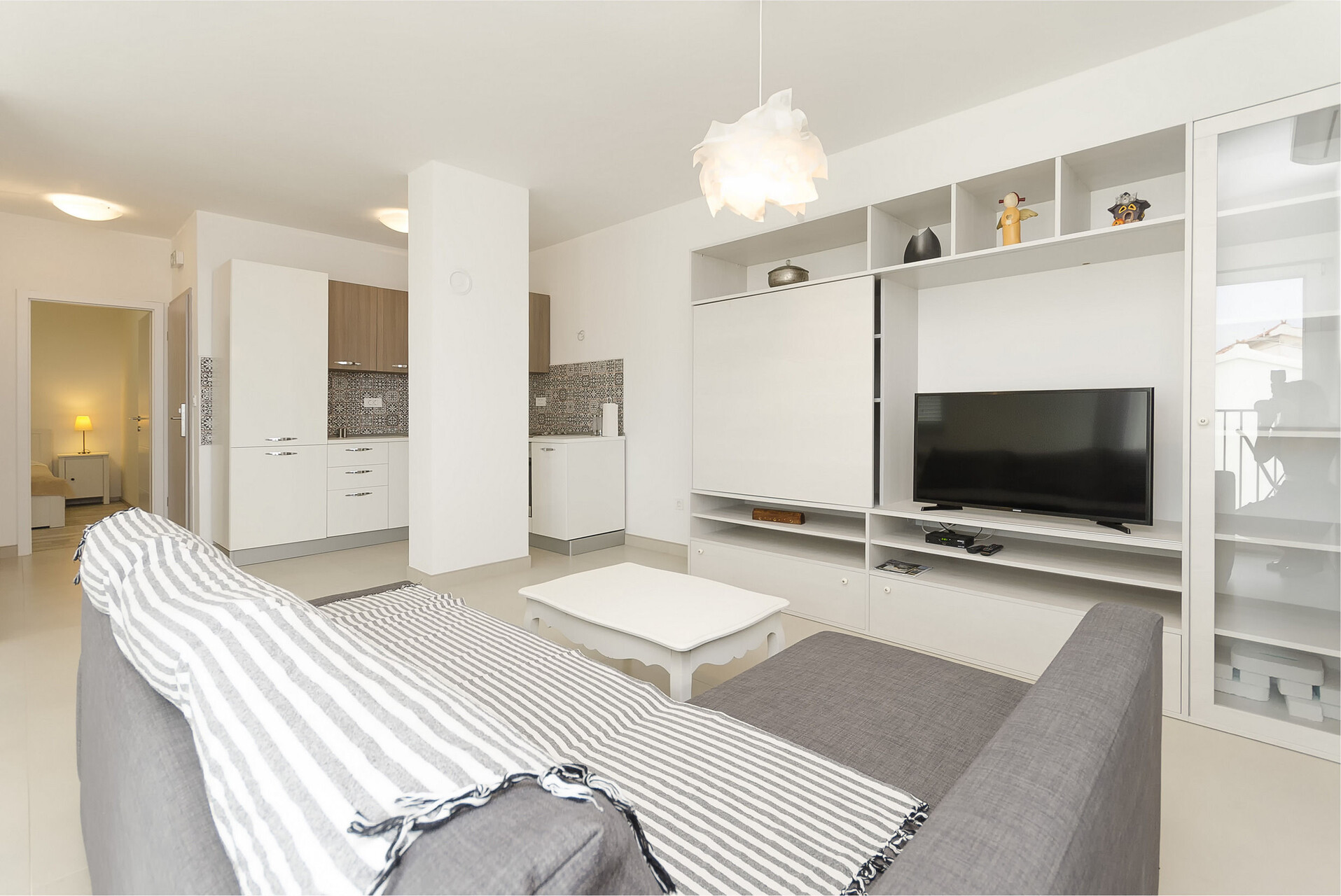 • TV set, satellite tv, radio, safe.