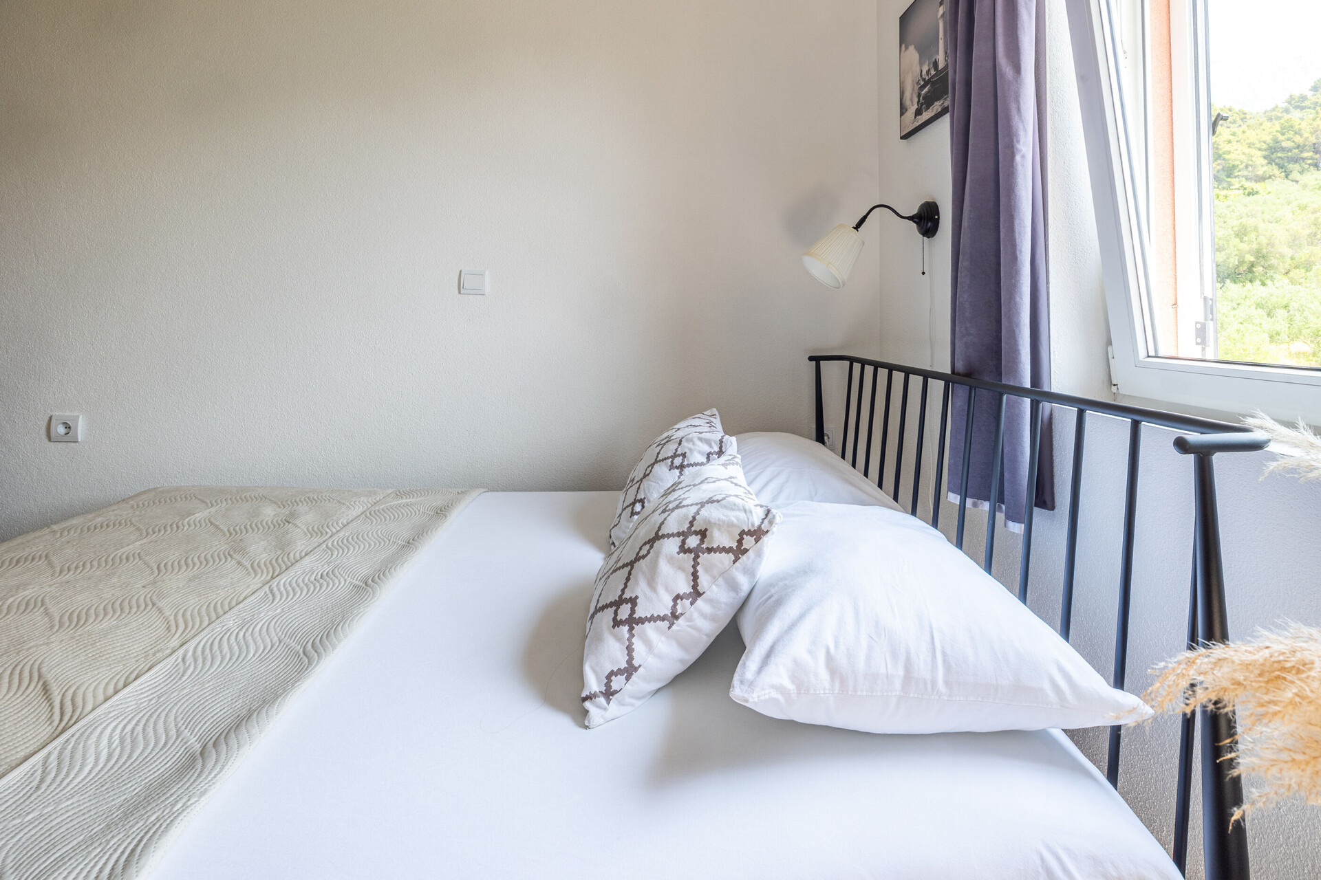 • Beds: Double bed. Bedding is available. Room has an exit to the balcony.