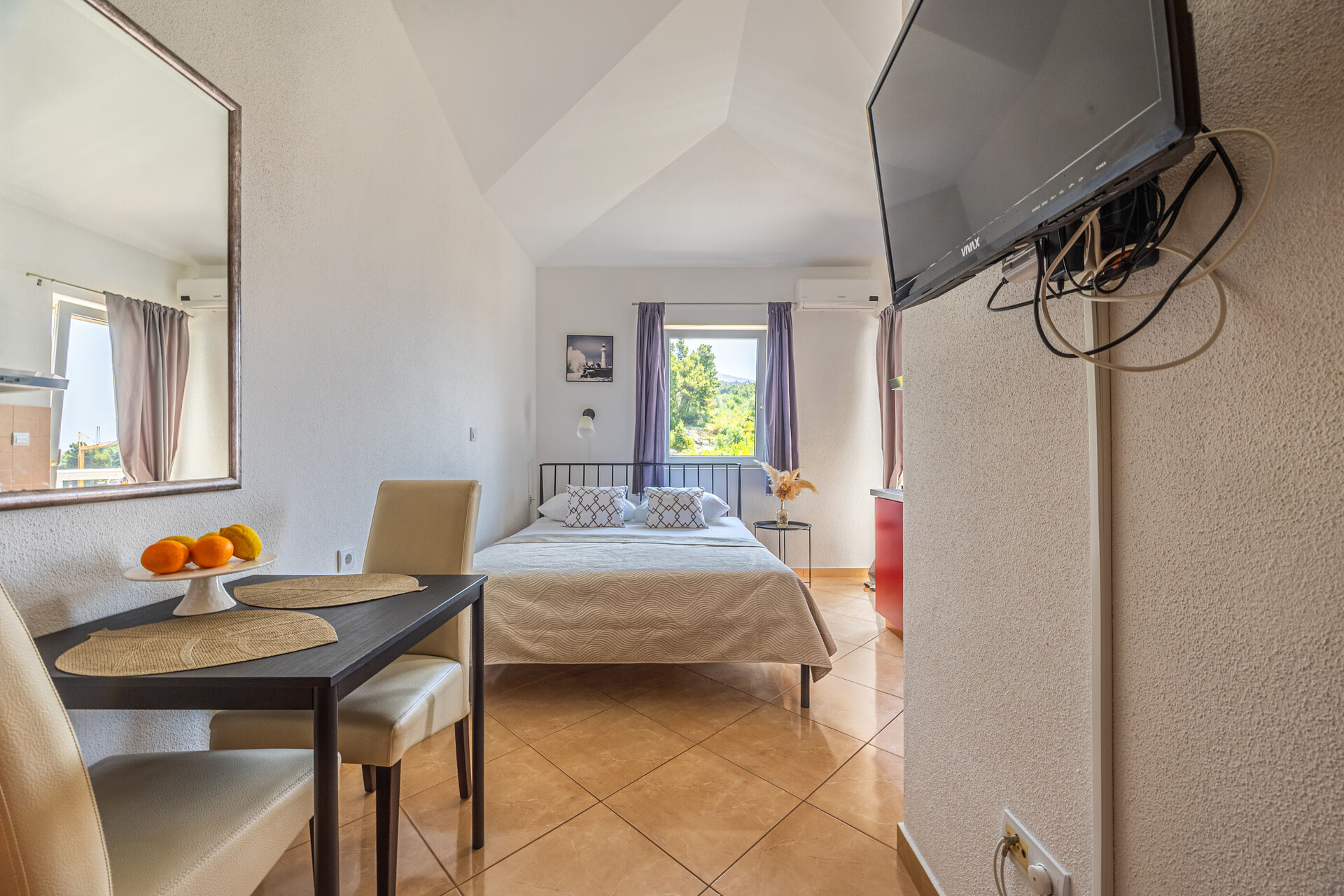 • Star rating: 2. Total surface area of the interior is: 20 m2. bathrooms: 1. balconies: 1. Beds: Double bed. Bedding is available. air conditioning included in the price, TV set, satellite tv. Unit is on: at the first floor.
