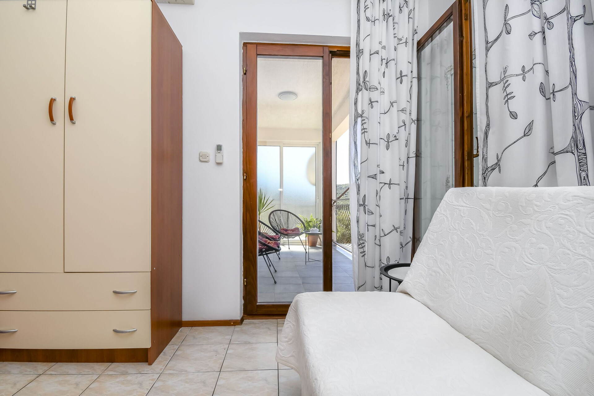 • Beds: Double bed. Room has an extra bed: one extra bed. Bedding is available. Room has an exit to the balcony.