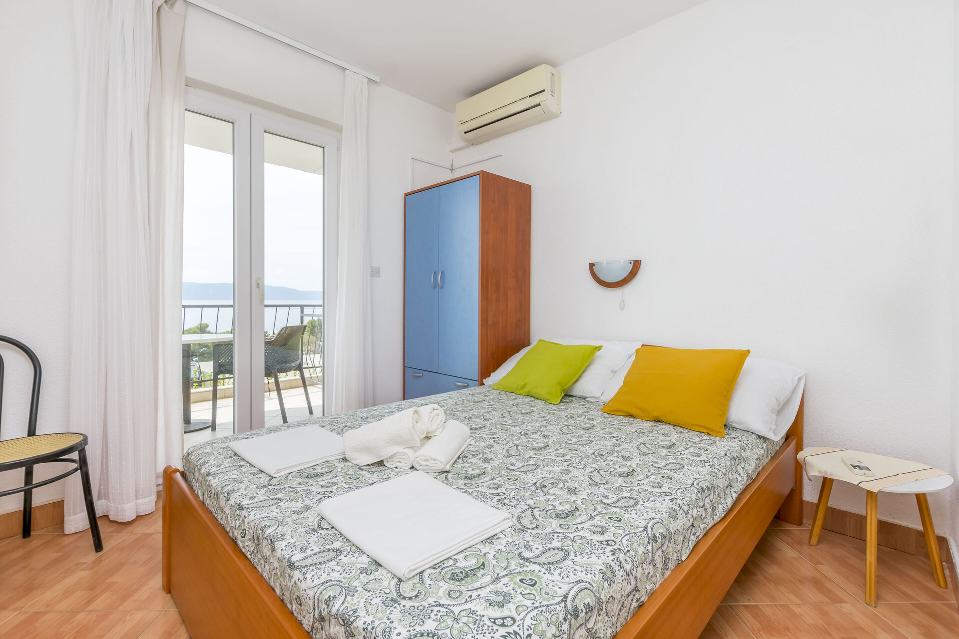 • Beds: French bed. Bedding is available. Room has an exit to the balcony.