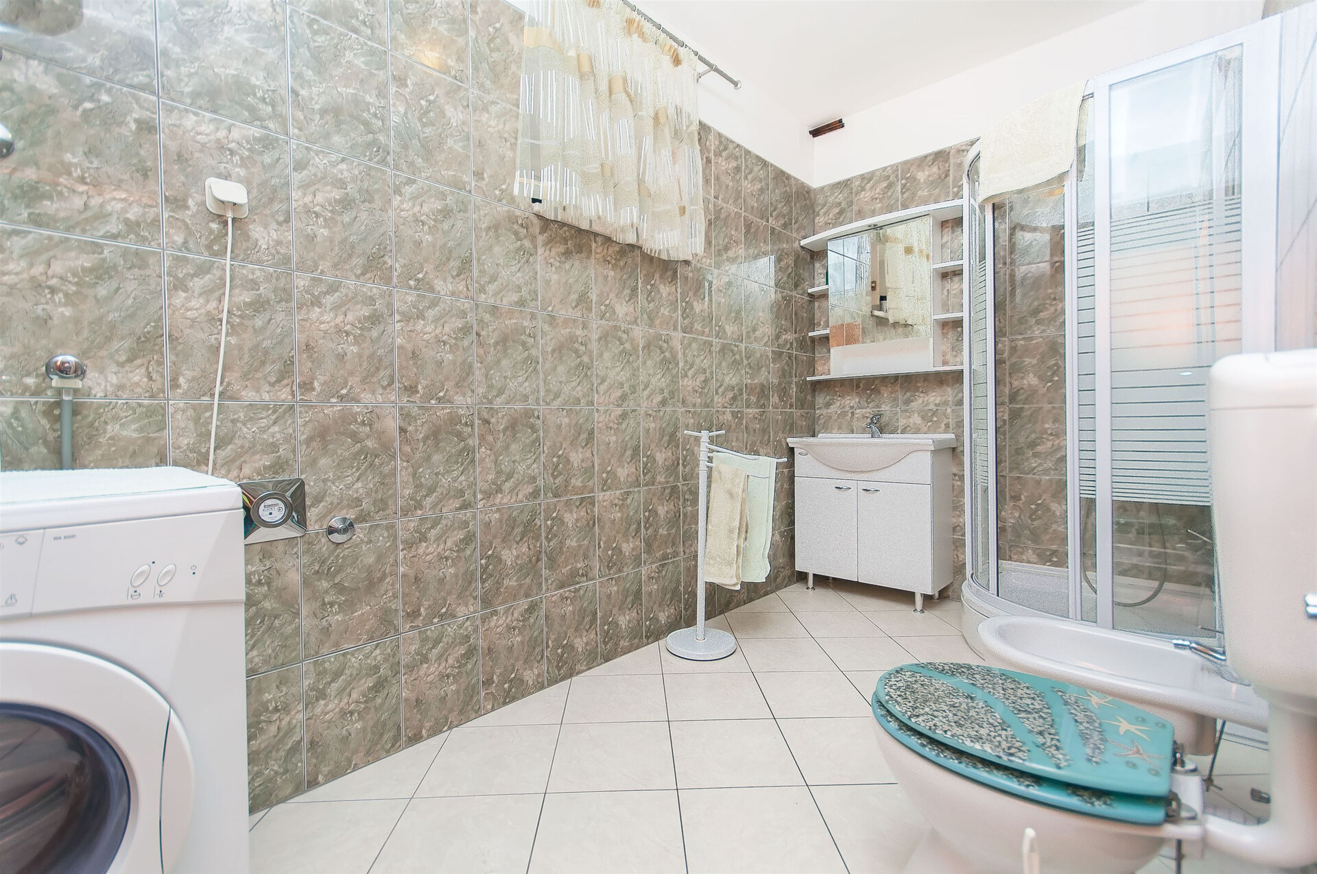 • sprcha, sprchový kout, pračka, fén, ručníky.