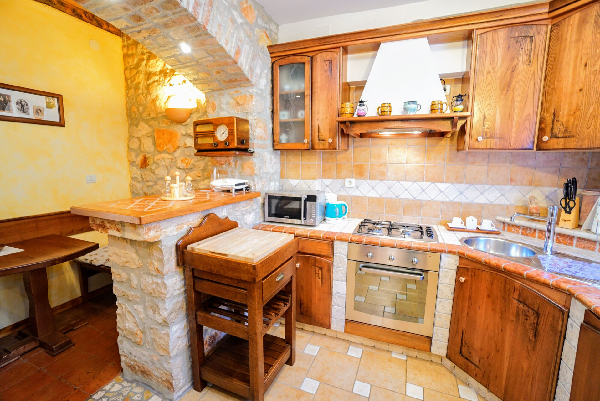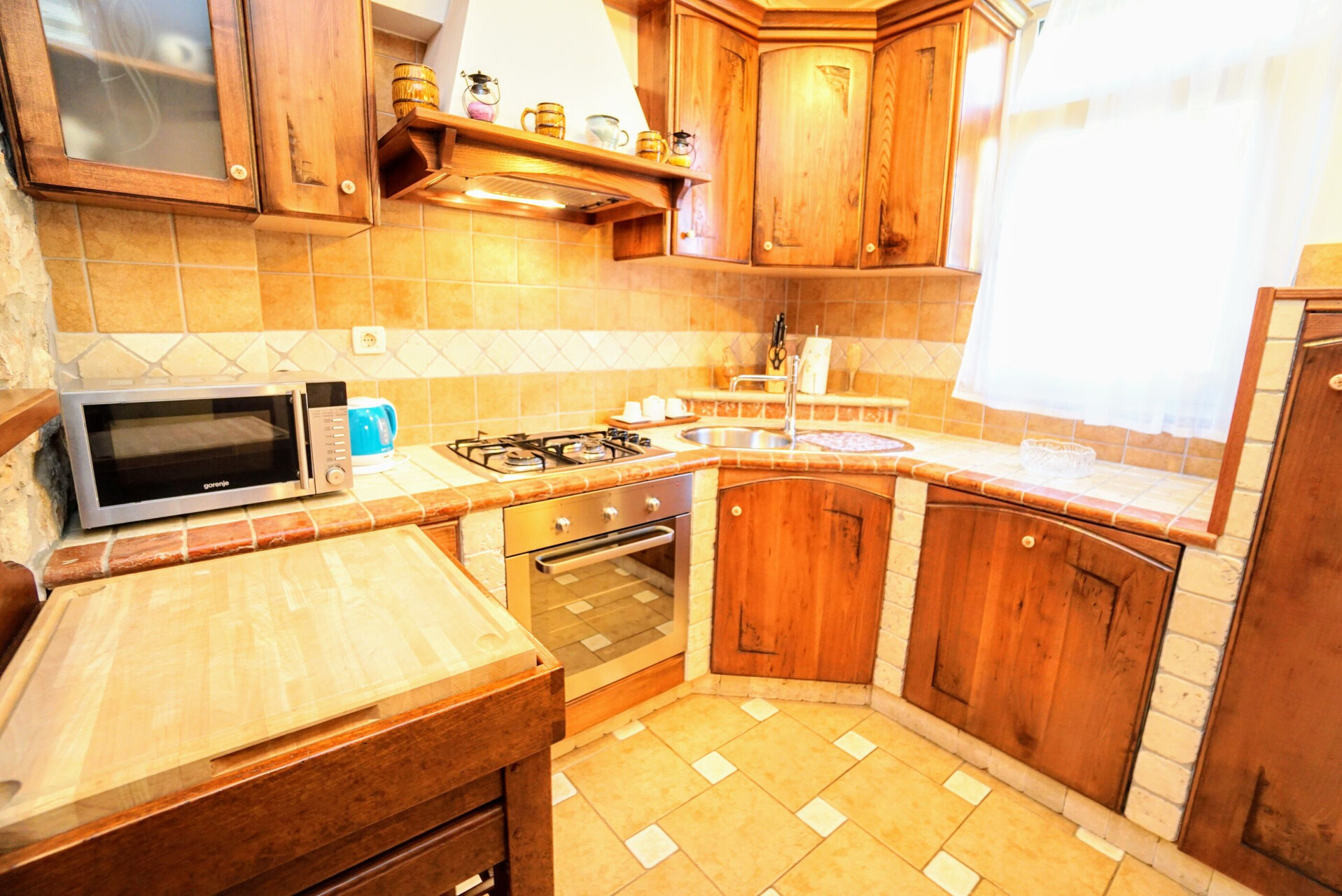 • stůl a židle, dřez, trouba, lednička, mražák, sporák varná deska.