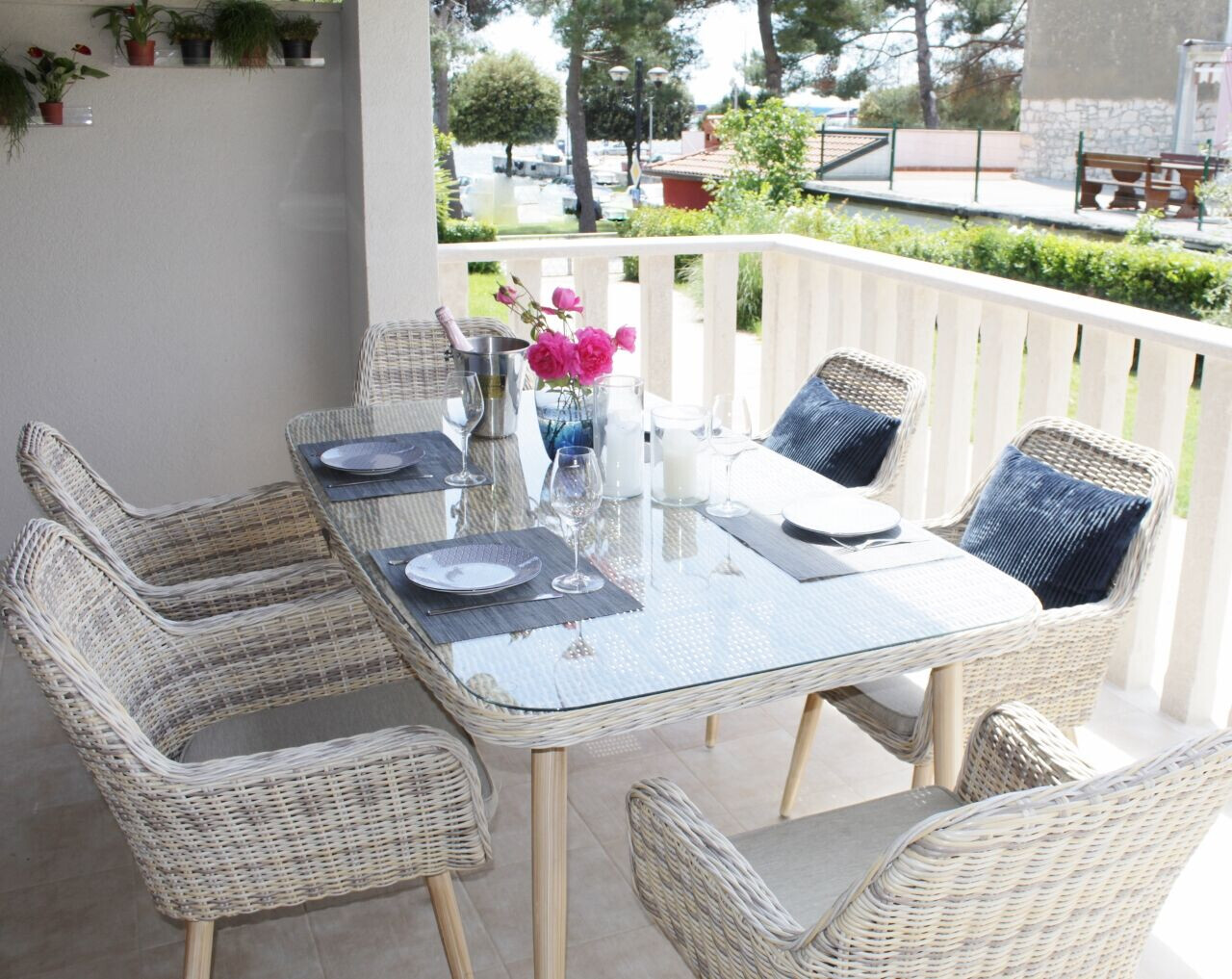 • venkovní nábytek na balkonu, soukromá terasa / balkon.
