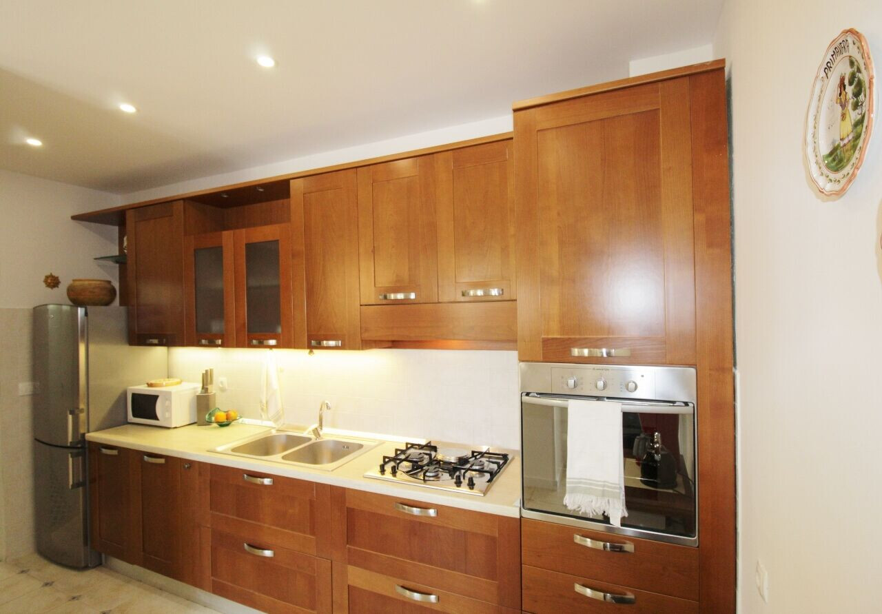 • stůl a židle, dřez, trouba, lednička, mražák, varná konvice, kávovar, Mikrovlná trouba, sporák varná deska.